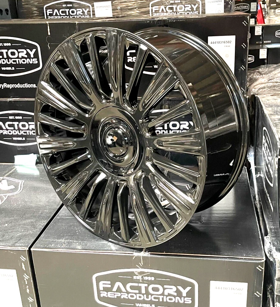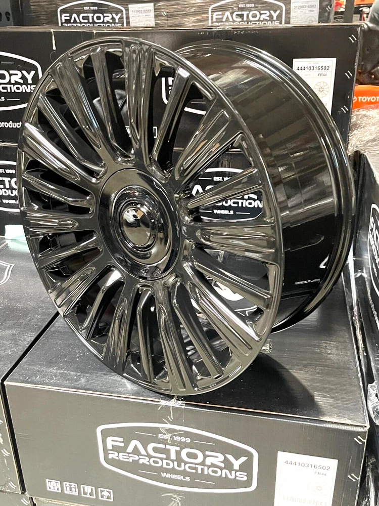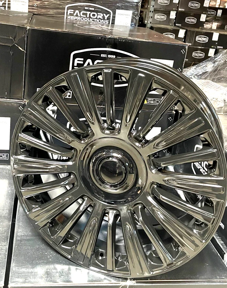 eBay compatibility charts are not always reliable. Vehicle listed in compatibility charr and below, by us are correct and will fit. If you have questions on fitment, please message us. Not sure what fits? Questions? 8008242676 Monday – Friday 7am to 5pm, Saturday 8:30am to 12:30pm PST Additional Shipping Charges apply to Alaska , Hawaii , Puerto Rico, Canada, APO, FPO, DPO and any other US territory. (4) New 22" Replica 4876 Cadillac Escalade Platinum Wheels with Plain Center Caps By: Factory Reproductions - Manufacturer and Supplier Gloss Black Finish Size: 22"x9" 6Lugx5.5"Bolt Circle Offset: +28 mm Also Available: 24 Lug Nuts Black $36 TPMS Set: $129.00 Tire and wheels packages also available, message for details Fitment: 2007 - Current 6 Lug Bolt Chevy & GMC Pickup, Suburban, Tahoe, Cadillac Escalades and many other Chevy and GMC Vehicles. or message with any fitment questions. Shipping insurance included with all orders. eBay charges taxes to most states, we have no control of how and from whom they collect them. Lifetime Structural, 2 year Finish Warranty Buy with confidence directly from Factory Reproductions and take advantage of these unbelievably low prices. About our Wheels: All Factory Reproductions wheels are manufactured exclusively for us by plants that also provide wheels for General Motors, Ford, Honda, Toyota , Mercedes Benz and others. These plants are ISO certified and produce wheels that meet or exceed JWL, VIA and TUV standards. Contrary to what others advertise there is no “DOT” certification or standard Our wheels are tested and exceed both domestic and international OEM specifications for load capacity, side impact as well as lateral and radial run out. About the Finish: Painted wheels are finished using a 4 stage process which exceeds all domestic and international OEM standards. Chrome wheels are first polished prior to plating. Copper is applied and hand buffed to eliminate small imperfections. Next is a nickel alloy layer that provides a hard and durable surface for the chrome to adhere. Finally a chrome alloy is applied which protects the nickel and gives the wheel a mirror like finish. Our plating process meets or exceeds all OEM standards. Sample wheels from each batch are routinely subjected to rigorous testing (i.e. salt spray) to assure the finish will be durable and look good for years to come. About our Company: Headquartered in Chino California , 1997 Factory Reproductions is the original replica wheel company. We supply our product to distributors, mail order companies as well as tire and wheel stores. We are the industry leader offering more styles, sizes and finishes than any one else. Warranty: 2 years finish life time structural. Shipping: Orders are usually shipped within one business day of payment. We ship via FedEx and will email tracking numbers when your order is sent. Additional Shipping Charges apply to Alaska , Hawaii , Puerto Rico and Canada . Payment: PayPal, VISA, MasterCard, Discover and American Express. Sales Tax: All orders shipped within California are subject to sales tax. Returns: Customer is responsible returning merchandise undamaged, in new condition with all original packaging. Test fit the wheels before you mount tires. If you mount tires on the wheels you own them – no exceptions. Shipping charges are non-refundable. Mounted tire and wheel packages are not returnable. No returns after 30 days. A minimum $40.00 restocking fee (Center Caps $5.00) applies. *LEGAL DISCLAIMER: THESE WHEELS/PRODUCTS ARE NOT AFFILIATED WITH THE VEHICLE MANUFACTURER IN ANY WAY OR FORM. ANY TRADEMARKED TERMS USED TO DESCRIBE THE PRODUCT ARE USED FOR FITMENT AND DESCRIPTIVE PURPOSES ONLY. FACTORY REPRODUCTIONS, INC. STATES THAT OUR USE OF THE VEHICLE MANUFACTURER’S TRADEMARKED TERMS IN OUR PRODUCT DESCRIPTIONS CONSTITUTE FAIR USE AND NOMINATIVE USE AND IS IN NO WAY TO OFFER CONFUSION THAT FACTORY REPRODUCTIONS, INC PRODUCTS AND THE VEHICLE MANUFACTURER’S PRODUCTS ARE RELATED OR THEIR COMPANIES. DISCLAIMER: Factory Reproductions is not, nor does it claim to be, affiliated with any automotive manufacturer in any way or form. The terms “Corvette”, “Camaro”, “GMC”, “Chevrolet”, “Ford”, “Dodge”, ” Chrysler”, “Jeep”, “Lexus”, and “Toyota” are used for application purposes only.