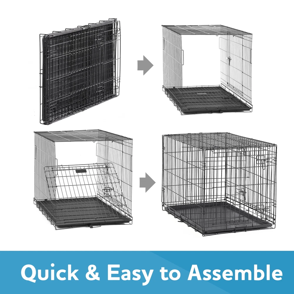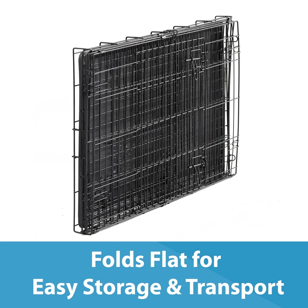 Keep your pet secure with the Vibrant Life Double-Door Folding Dog Crate with Divider. It features a heavy-duty, non-corrosive steel frame and a 22-inch double door with locking latches to prevent your animal from escaping. The open wire construction offers visibility and ventilation for your furry friend while the removable floor provides a smooth surface for your dog to enjoy food, water, toys, and treats on while inside. When not in use, it folds flat for compact storage and transport. This kennel can accommodate dogs up to 25 pounds and is suitable for house training and creating a comfortable, den-like space for your dog. Keep your dog safe while away with the Vibrant Life Double-Door Folding Dog Crate with Divider.Help your pets live the Vibrant Life! Our products are specially crafted with one goal in mind, seeing your pet at its very best. Key Features: Strong and durable heavy-gauge steel frame Ideal for house training and creating comfortable containment Suitable for breeds up to 25 lbs Includes a divider for housing 2 smaller dogs Folds flat for easy transport and storage Quick and easy to assemble Removable tray Front and side access doors with dual-sliding latches Provides clear visibility and ventilation