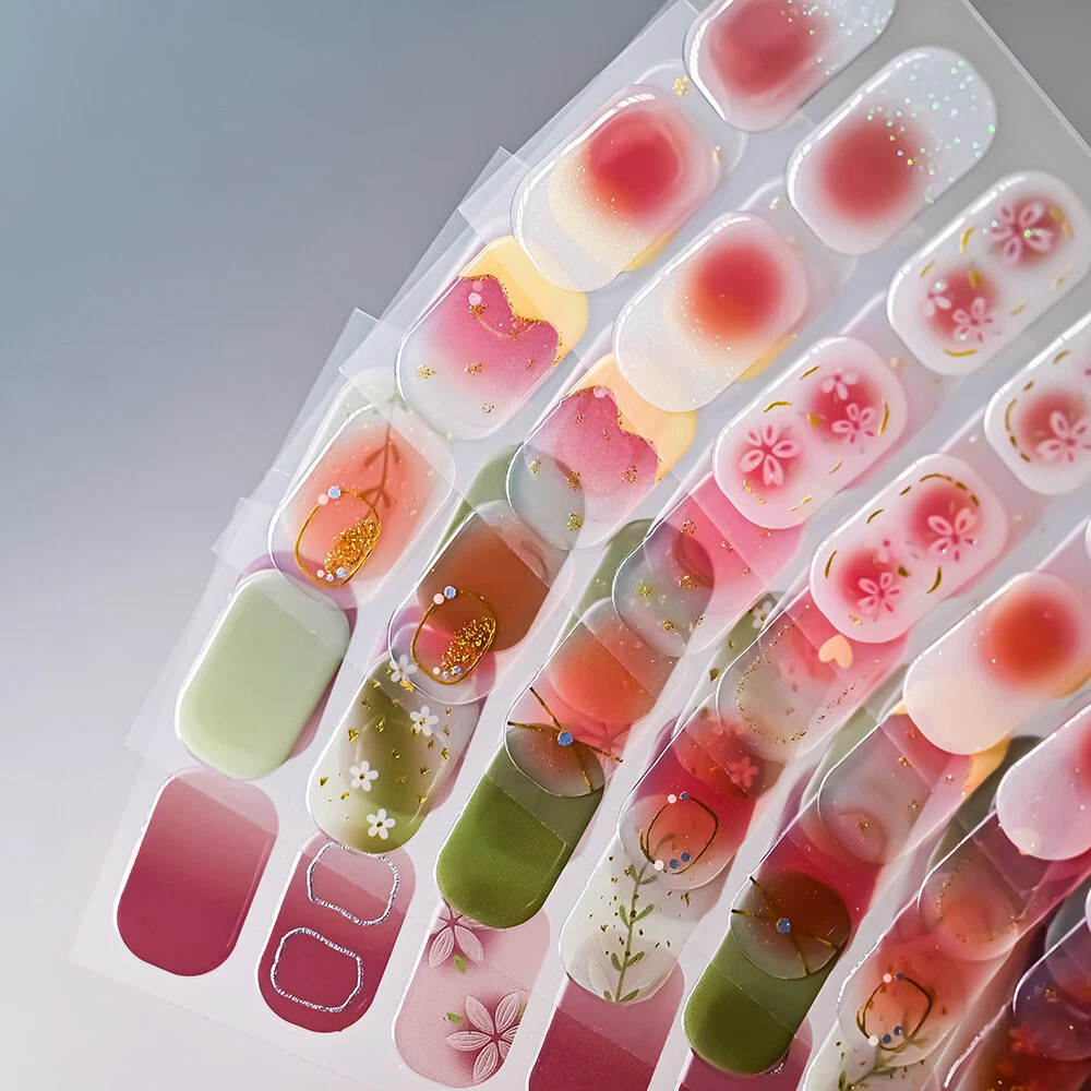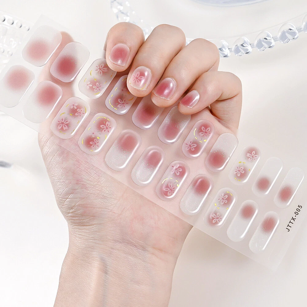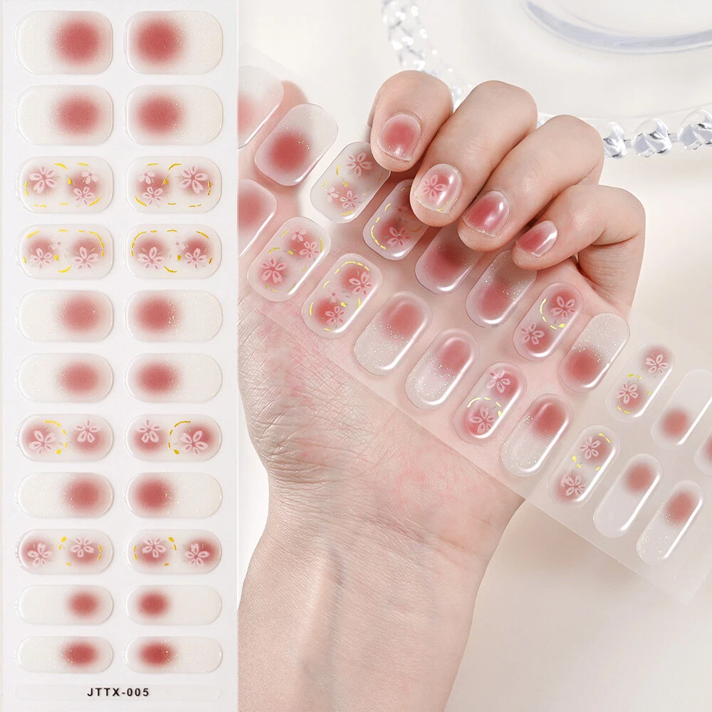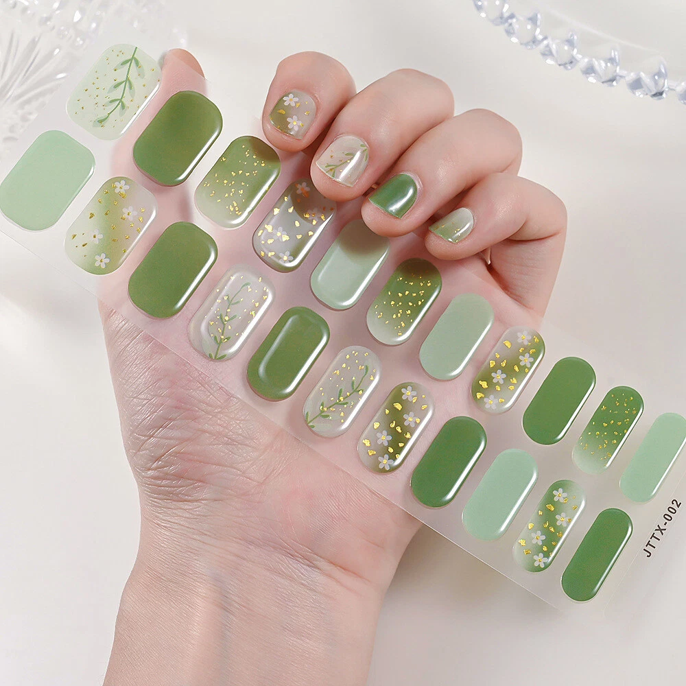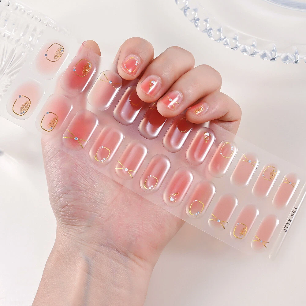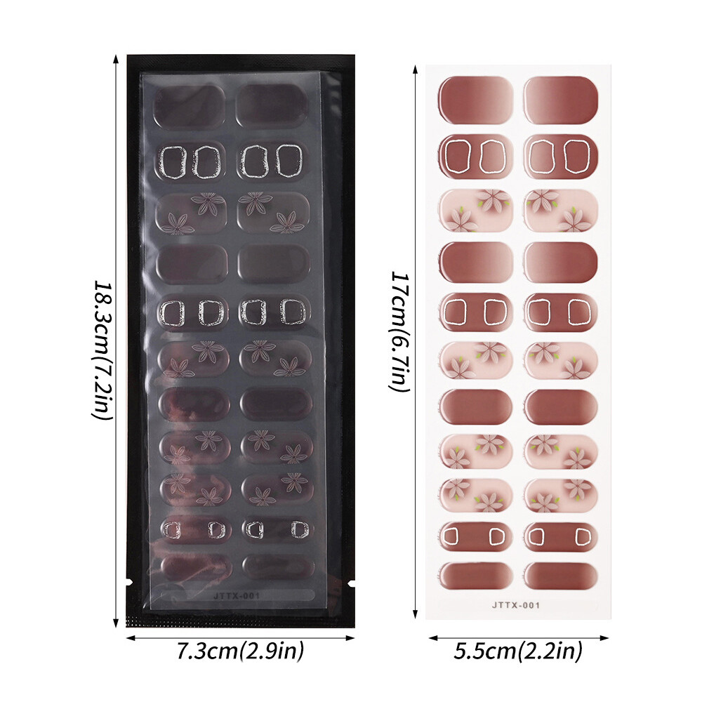 Full Cover Wraps 22Tips Gel Nail Sticker 3D Foil French Patch DIY Manicure 100% Brand New Color:As the picture shows QTY:22Tips/Sheet Color:As Show Package Include: 22Tips/Sheet Nail Stickers Features: What are semi-cured gel nail wraps stickers? 1.They are stickers made of real liquid gel and cured (or finalized) by 60%. 2.They are made of flexible and wearable material in order to fit most nail shapes and sizes. 3.After placing them on your nails and curing the remaining 40% with a UV lamp, the gel will completely harden, and the effect will be like applying colorful nail polish in a nail salon. 4.Semi-cured gel nail strips can also be dried naturally under the sun for 1-2 hours without UV light. HOW TO USE: 1. Smooth your nails with the nail file and clean your nails with cotton pads. 2. Choose the right size that fits your nails, peel off the protective films of the Gel Nail. 3. Place on the fingernails gently. 4. Use a small wood stick to press and flatten the edges of the nails. 5. Use scissors to cut off the excess gel nails, and then file the perfect shape with a nail file. 6. Cure the gel nails under UV/LED light. 7. Smooth the edges with a nail file. 8. Done! How To Remove: 1.Use the wood stick to lift gel nail wraps off your nails. 2.Clean your nails with cotton pads. ATTENTION: 1: Please use it immediately after opening it. 2: Please keep it in a film container after use, and use a sealing strip to avoid drying out. 3: Please keep it away from young children, and avoid eating by mistake. 4: Do not use it when your skin has a cut. 5: The colors may exist slight differences due to different screens. STORAGE: Please store in dark, cool and dry place to avoid hardening