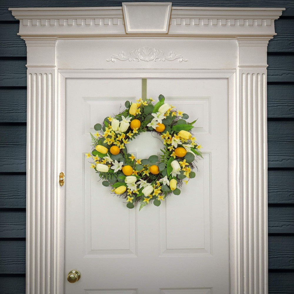 22 in. Spring Wreath with Yellow Tulip Blooms, Lemons, and Forsythia Flower Blossoms Introducing the National Tree Company 22 inch Spring Wreath. This elegant and eye-catching floral front door wreath features bright yellow tulip blooms, lemons, and beautiful forsythia flower blossoms, paired with flowing green stems for a lively spring look. This spring floral wreath captures the essence of the season with its realistic textures, rich colors, and natural design, making it an excellent choice for both indoor and covered outdoor spaces. Whether hung on your front door to greet guests or displayed as a stunning centerpiece indoors, this wreath effortlessly adds a welcoming touch that complements any décor style. Its versatility makes it perfect for decorating entryways, living rooms, or even office spaces, offering a fresh, vibrant look wherever it’s placed. Ideal for those who want to add seasonal charm without the upkeep, this wreath brings the essence of spring to your home with minimal effort. LIFELIKE ARTIFICIAL FLORAL WREATH: This summer wreath features realistic yellow tulip blooms, forsythia flowers, and lemons. This floral home décor beautifully represents the colors and textures of spring, creating a cheerful and welcoming atmosphere for any room or front door. VERSATILE HOME DÉCOR: This floral wreath is ideal for hanging on doors or windows as part of your spring or summer décor. It’s perfect for both entryways and living rooms, adding a fresh, floral touch to your home. This floral door wreath can also be hung in covered outdoor locations, bringing a festive touch to your porch, patio, or balcony. It’s also a charming addition to mantels, dining tables, or as a centerpiece for holiday-themed gatherings, enhancing any room with its vibrant, spring-inspired design. QUALITY MATERIALS: Crafted from high-quality materials, this wreath features a woven branch ring base, designed to maintain its beauty and integrity for years to come. The durable construction ensures it can withstand seasonal use, providing long-lasting, vibrant décor that retains its charm even after multiple springs and summers. Whether displayed indoors or in covered outdoor areas, this wreath is built to stand the test of time with minimal maintenance. EASY TO MAINTAIN: Simply take this summer décor out of the box and shape it to your desired look. No need for watering or pruning—this wreath requires minimal upkeep. Simply dust it once a month to keep it looking vibrant, fresh, and full of seasonal charm. FAUX FLORAL WREATH DIMENSIONS: 4”L x 22”W x 22”H, 2 lbs. Perfect for both indoor and covered outdoor use, this wreath is a seasonal must-have for your home’s décor. 22 in. Spring Wreath with Yellow Tulip Blooms, Lemons, and Forsythia Flower Blossoms Introducing the National Tree Company 22 inch Spring Wreath. This elegant and eye-catching floral front door wreath features bright yellow tulip blooms, lemons, and beautiful forsythia flower blossoms, paired with flowing green stems for a lively spring look. This spring floral wreath captures the essence of the season with its realistic textures, rich colors, and natural design, making it an excellent choice for both indoor and covered outdoor spaces. Whether hung on your front door to greet guests or displayed as a stunning centerpiece indoors, this wreath effortlessly adds a welcoming touch that complements any décor style. Its versatility makes it perfect for decorating entryways, living rooms, or even office spaces, offering a fresh, vibrant look wherever it’s placed. Ideal for those who want to add seasonal charm without the upkeep, this wreath brings the essence of spring to your home with minimal effort. LIFELIKE ARTIFICIAL FLORAL WREATH: This summer wreath features realistic yellow tulip blooms, forsythia flowers, and lemons. This floral home décor beautifully represents the colors and textures of spring, creating a cheerful and welcoming atmosphere for any room or front door. VERSATILE HOME DÉCOR: This floral wreath is ideal for hanging on doors or windows as part of your spring or summer décor. It’s perfect for both entryways and living rooms, adding a fresh, floral touch to your home. This floral door wreath can also be hung in covered outdoor locations, bringing a festive touch to your porch, patio, or balcony. It’s also a charming addition to mantels, dining tables, or as a centerpiece for holiday-themed gatherings, enhancing any room with its vibrant, spring-inspired design. QUALITY MATERIALS: Crafted from high-quality materials, this wreath features a woven branch ring base, designed to maintain its beauty and integrity for years to come. The durable construction ensures it can withstand seasonal use, providing long-lasting, vibrant décor that retains its charm even after multiple springs and summers. Whether displayed indoors or in covered outdoor areas, this wreath is built to stand the test of time with minimal maintenance. EASY TO MAINTAIN: Simply take this summer décor out of the box and shape it to your desired look. No need for watering or pruning—this wreath requires minimal upkeep. Simply dust it once a month to keep it looking vibrant, fresh, and full of seasonal charm. FAUX FLORAL WREATH DIMENSIONS: 4”L x 22”W x 22”H, 2 lbs. Perfect for both indoor and covered outdoor use, this wreath is a seasonal must-have for your home’s décor. × × × Buy now and save! Shipping info Click the Shipping & Payments tab above the listing description for more info FREE Shipping Click the Shipping & Payments tab above the listing description for more info! Additional delivery notes PICK UP OPTION Sorry, our items are NOT available for pick-up. PAYMENT Immediate payment is required upon selecting "Buy It Now" or upon checking out through the cart. We accept payment via U.S. PayPal accounts and all Major Credit Cards, Debit Cards & Google Pay. We are legally required to collect sales tax in those states and localiti
