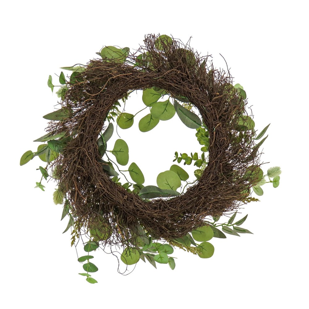LIFELIKE ARTIFICIAL GREENERY WREATH: This greenery wreath is made with realistic eucalyptus leaves, baby's breath, and flowing green stems. This greenery home décor beautifully represents the colors and textures of spring, creating a cheerful and welcoming atmosphere for any room or front door. VERSATILE HOME DÉCOR: This leafy wreath is ideal for hanging on doors or windows as part of your spring or summer décor. It’s perfect for both entryways and living rooms, adding a botanical touch to your home. This summer wreath can also be hung in covered outdoor locations, bringing a festive touch to your porch, patio, or balcony. It’s also a charming addition to mantels, dining tables, or as a centerpiece for holiday-themed gatherings, enhancing any room with its vibrant, spring-inspired design. QUALITY MATERIALS: Crafted from high-quality materials, this summer wreath features a woven branch ring base, designed to maintain its beauty and integrity for years to come. The durable construction ensures it can withstand seasonal use, providing long-lasting, vibrant décor that retains its charm even after multiple springs and summers. Whether displayed indoors or in covered outdoor areas, this wreath is built to stand the test of time with minimal maintenance. EASY TO MAINTAIN: Simply take this summer décor out of the box and shape it to your desired look. No need for watering or pruning—this eucalyptus wreath requires minimal upkeep. Simply dust it once a month to keep it looking vibrant, fresh, and full of seasonal charm. FAUX GREENERY WREATH DIMENSIONS: 5”L x 22”W x 22”H, 1 lb. Perfect for both indoor and covered outdoor use, this eucalyptus wreath is a seasonal must-have for your home’s décor.