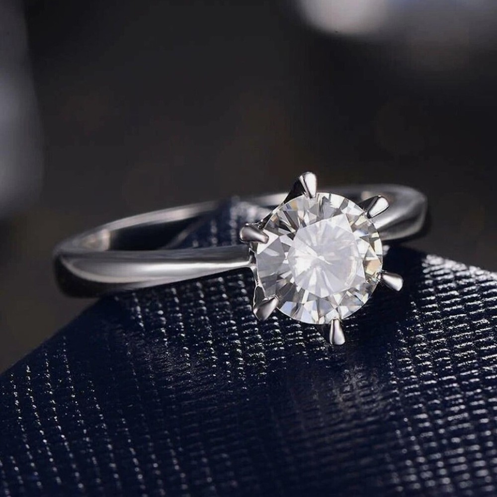 $ 124.49.50 Ct Round Cut White Diamond Solitaire Ring 925 Silver Certified Sparkle