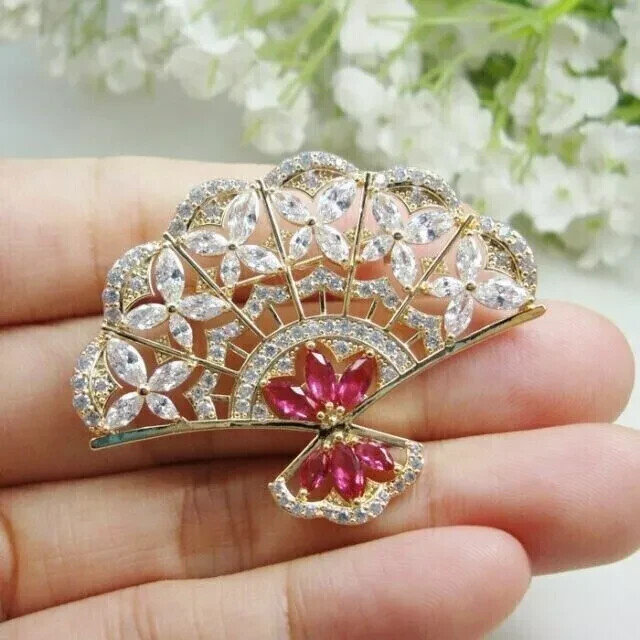 Shape: Fan Main Stone: Ruby Metal: Sterling Silver Theme: Beauty Brand: karunas-76 Main Stone Treatment: Not Enhanced Setting Style: Prong Handmade: Yes Base Metal: Sterling Silver Metal Purity: 925 Main Stone Color: Red Country/Region of Manufacture: India Material: Stone Gemstone Clarity Grade: Slightly Included Main Stone Creation: Simulated Occasion: Anniversary, Birthday, Christening, Christmas, Engagement, Graduation, Mother's Day, Valentine's Day, Wedding Country of Origin: India Personalize: Yes Item Length: As per picture Features: Engraved Number of Gemstones: As Per Picture Customized: Yes Antique: No Signed: No Cut Grade: Excellent Type: Brooch Main Stone Shape: Marquise Seller Warranty: Yes Color: Yellow Era: Undated Secondary Stone: Simulated Diamond Vintage: No