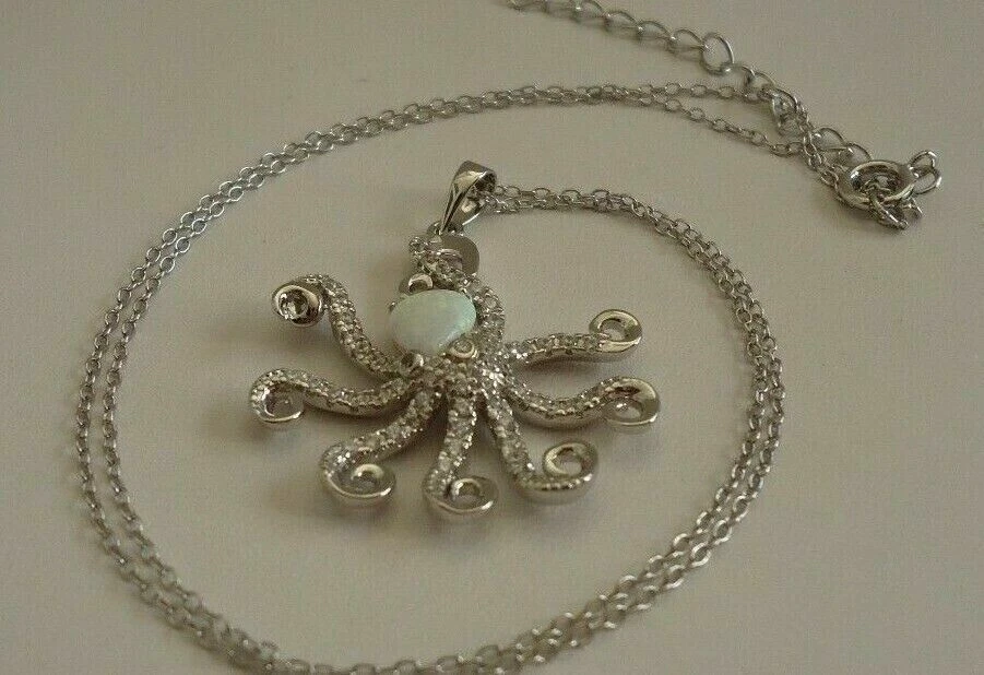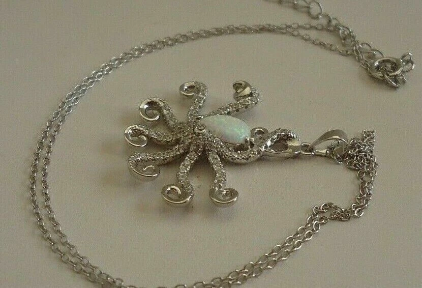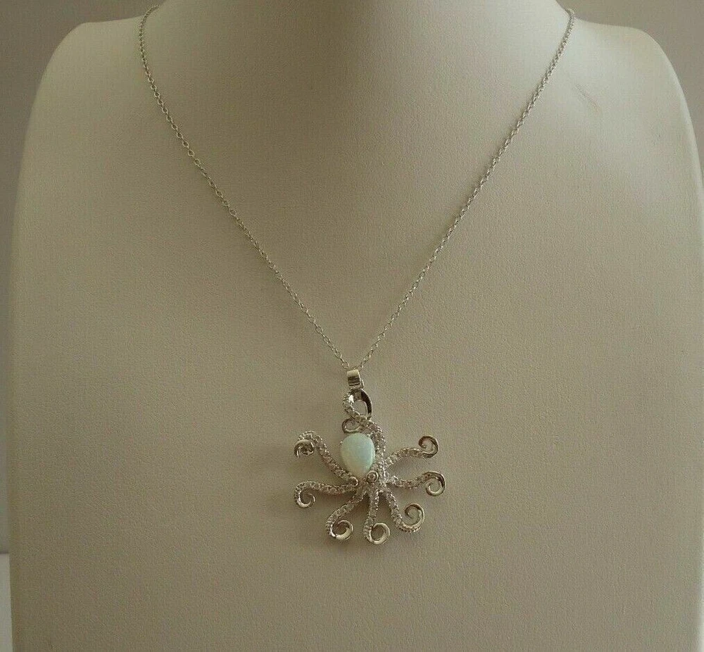 Number of Gemstones: 01 Occasion: Anniversary, Birthday, Christening, Christmas, Confirmation/Communion, Engagement, Father's Day, Graduation, Mother's Day, Valentine's Day, Wedding Main Stone Color: Multicolor Seller Warranty: Yes Pendant/Locket Type: Charm Country of Origin: Unknown Pendant Shape: Octopus Type: Pendant Closure: Spring Ring Material: Gemstone, Stone, Metal Cut Grade: Excellent Necklace Length: 18 in Main Stone: Simulated Fire Opal Setting Style: Prong Color: White Features: Engraved Country/Region of Manufacture: India UPC: Dose not Apply Main Stone Shape: Pear Personalization Instructions: We change the over layer as per your requirement. Gemstone Clarity Grade: Slightly Included gtin13: Dose not Apply Metal: Sterling Silver Handmade: Yes Personalize: Yes Era: Undated Customized: Yes Brand: excellentstore MPN: NA Main Stone Treatment: Not Enhanced Signed: No Metal Purity: 925 Secondary Stone: Simulated Diamond Base Metal: White Gold Plated Vintage: No Chain Type: Cable Main Stone Creation: Simulated Wholesale: Yes Theme: Beauty Style: Chain, Pendant Antique: No