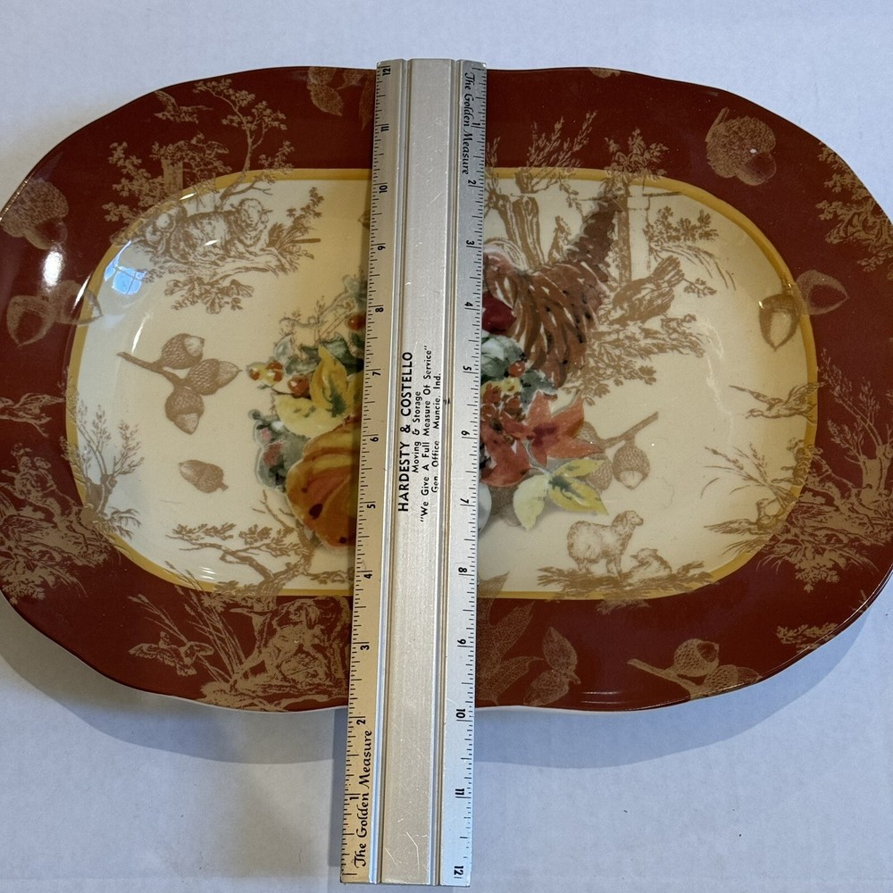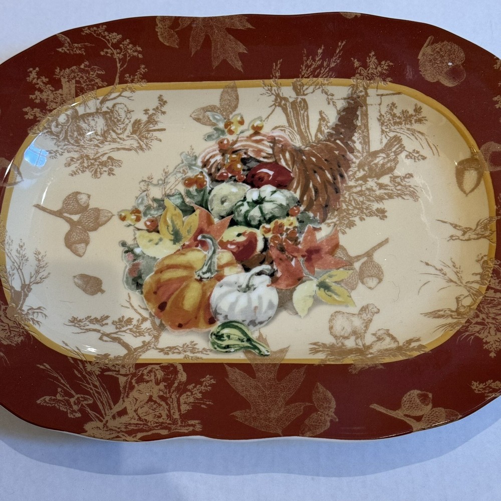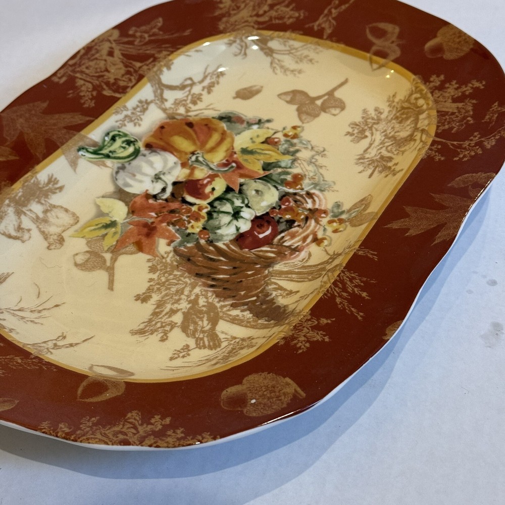 222 Fifth Harvest Fine China Rectangular Serving Plate - Elegant Autumn Cornucopia Design for Seasonal Entertaining
