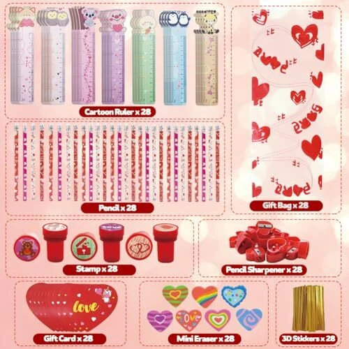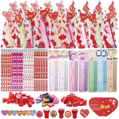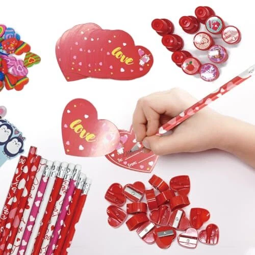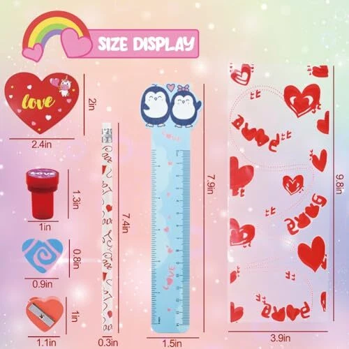 Return Policy Fast Delivery Trusted seller 224PCS Valentines Day Stationery Set, Valentines Day Gifts with Pencil Cards Stamper Eraser Ruler Sharpener Gift Bag for Kids Valentine's School Classroom Prize Party Favors Valentine Gifts Exchange Product Description SUPER VALUE SET: This 28-pack Valentine's Day stationery set contains 8 products: Pencil, heart eraser, pencil sharpener, ruler, stamper, OPP bag, heart card, and gold tie, 28 pieces of each product. A variety of stationery will make your Valentine's Day gift even more popular UNIQUE DESIGN & EASY TO USE: Encourage Your Kids to creatively write for their friends or special someone. This is a fun way to store memories, write down their dreams and memories, add photos, cards, ticket stubs and more to revisit their fun time over and over again HIGH QUALITY: Our stationery sets are carefully crafted with high quality materials and each product has been carefully selected to provide you with a full range of premium stationery essentials, ensuring you can use them for a long time without compromising quality SAFETY: Child safe, they are made of Non-Toxic materials which is Eco-Friendly and look great. Meet US toy sandard. Safety test approved IDEAL GIFT: Valentine's Day Cards Set are Perfect for Kids Valentine's Day, Class Events, Gift Exchange, School Classroom Prize, Love Notes, Party Favor and so on. The Kids will Surely Enjoy Sharing This with Friends Shipping Returns Payment Shipping Shipping is FREE to all addresses other than APO/PO boxes in the lower 48 states. All our stock ships from US-based warehouses. Shipped via USPS or UPS (depending on location and package weight) Unless stated otherwise, all orders will ship within 24-72 hours of your payment being processed. Check our feedback to see the great reviews of FAST shipping we offer. Returns Seller does not accept returns Payment We currently accept payment via eBay managed payments only. Once payment is cleared, we will dispatch your shipment within 1-3 business days. Please refer to the "Shipping" tab for more information regarding shipping speed to your destination.