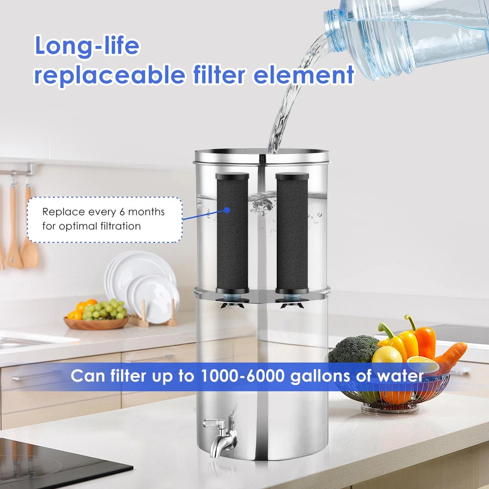 Store category Sign Up Now ! You may also like Product Description Bullet Points: Large Family Hydration Solution: With a 2.25-gallon capacity ensuring clean, well-maintained water, this stainless steel water filter delivers drinking water safety and cleaner, better-tasting water, ideal for family use Excellent Filtration Performance: Designed with excellent 304 stainless steel shell, our water filter combines fine craftsmanship and durability to improve the taste of your home drinking water, elevating it to new levels of flavor and refreshment Advanced Filtration: Our stainless steel water filter uses safe materials and an 8-stage composite filtration system to efficiently remove chlorine and reduce pollutants, providing clean and safe drinking water for you and your family Effortlessly Filter Water: Boasting an upper and lower container design with 2 filters, spigot, and a stand, this stainless steel water filter simplifies the filtration process and installation. No more struggling with complicated setup or difficult operating, this filter is designed to make your life easier Energy-saving Design: Our stainless steel water filter provides an energy-saving and cost-effective design that requires no electricity. With its suitability for both indoor and outdoor use, it is an economical choice for households and individuals looking to a sustainable solution to clean drinking water This stylish and durable stainless steel water filter pitcher has a 2.25-gallon capacity, making it perfect for large families. It can comprehensively reduce pollutants found in water, ensuring pure, clean drinking water. The energy-saving design simplifies the installation process, making it easy to set up and use. Specifications: Product Name: Stainless Steel Water Filter Material: Stainless Steel Applicable Temperature: 32°F -90°F/0-32.2°C Flows Rate: 4 Gallons/Hour Filtration Life: 6000 Gallons Capacity: 2.25 Gallons Packing List: 1x water tank 2x filter element (CB and UF 6000 Gallons) 1x stainless steel faucet 1x stainless steel bottom covered with rubber bracket Payment Delivery details Terms of sales About us Feedback & DSRs Payment Before you palce an order, please kindly make sure that you have a paypal account. We accept PAYPAL payment only. Payment should be completed within 2 days after auction closed, or unpaid dispute will be filed for an closing auction. An unpaid case will be filled after 4 days. Delivery details We ship to your eBay address. Each package will be shipped to US by UPS Regular Parcel with tracking number. Please check your shipping address carefully before checkout, it can't be changed if order completed. All items will be shipped within 1-2 business day upon receipt of payment.Orders placed on weekend will be shipped within 3 days. If you do not receive your item in 7-10 business days.please contact us immediately for further assistance. We will be responsible for any damages or losses incurred in the shipping process. About us We maintain high standards of excellence FIVE STAR and strive for 100% customer satisfaction! Positive Feedback is very important to us. We hope that you contact us immediately Before you give us neutral or negative feedback, so that we can satisfactorily address your concerns. We promise to offer the lowest price and high quality produce. Our working time: From Monday to Friday(9:30 am to 18:00pm), we don't working on holidays ,hope you can understand and know that , thank you. Please always talk to us via ebay Message. We appreciate your business and look forward to growing our e-Bay sales with satisfied customers. Feedback Contact us If you have any questions, please feel free to contact with us by ebay Message during our business hours ( 9:30a.m. to 5:30 p.m.), or email us through eBay, we will try our best to help you to resolve it. For any presale or after-sale questions,please do feel free to email us! Due to the time difference, each email will be replied within 1 working day,and weekend will be delayed a bit. Feedback