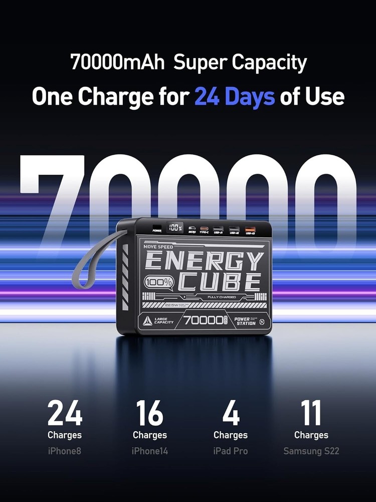 22.5W PD Fast Charge Power Bank, 70000mAh Capacity for Ultimate Portability ‹ › ‹ › ‹ › ‹ › ‹ › ‹ › ‹ › ‹ › ‹ › 22.5W PD Fast Charge Power Bank Experience unparalleled portability and power with our 70000mAh High Capacity Power Bank, designed for the modern adventurer. Features: Massive 70000mAh capacity, providing more than 24 full charges for iPhone 8, 16 full charges for iPhone 14, and 11 charges for Samsung S22. Supports both PD and QC fast charging protocols, ensuring rapid power delivery. 22.5W super fast charging capability—charge your iPhone 14 to 60% in just 30 minutes. 4 versatile outputs (2 USB ports, Type-C port, USB fast charge port) to accommodate multiple devices at once. Made with car-grade polymer batteries, ensuring safety and durability. Advanced safety features include overcurrent, overvoltage, and temperature protection. Convenient hand strap for effortless travel. Fashion-forward cyberpunk style for a unique look. Benefits: Stay powered up for an extended period, making it perfect for travel, hiking, and outdoor adventures. Fast charge your devices and get back to what matters most in no time. Multiple charging options enhance convenience, charging up to four devices simultaneously. Compact design means you won't be weighed down on your adventures. Reliable performance with high-quality safety certifications, ensuring worry-free charging. Why Choose 70000mAh High Capacity Power Bank? Elevate your on-the-go power experience with our Power Bank. With its staggering capacity, rapid charging capabilities, and layered safety protections, it stands out as an essential companion for outdoor camping and travel. Our power bank encapsulates cutting-edge technology while ensuring you remain stylish and efficient. Don't compromise on power or safety—choose reliability and performance that complements your adventurous lifestyle. Order your 70000mAh Power Bank today! Shipping Free & Fast Shipping - We offer free shipping to most of the USA with a normal delivery time of 3-7 days. However, due to the current situation, additional delivery time (up to 3 weeks) may be required for some items. Alternative Carriers - We may use alternative carriers (e.g. USPS, FedEx, UPS, etc.) to ensure your package arrives safely and on time. Due to the use of multiple carriers, we are unable to provide a tracking number automatically. Handling Time - Orders are processed and shipped within 1-2 business days of receiving cleared payment. Shipping Restrictions - Shipping to Alaska, Hawaii, Puerto Rico, Guam, and other US territories may incur shipping charges or delivery restrictions. Please contact us before ordering, or your order can be refunded/cancelled. State Restrictions - There may be restrictions based on your state of purchase. For example, certain items may not be shipped to California due to state regulations. Contact for Tracking Updates - If you require tracking updates or have any concerns about the delivery of your order, please feel free to contact us, and we will be happy to assist you. Return 30-Day Hassle-Free Returns - We want you to be completely satisfied with your purchase. If you are not, you can return the item within 30 days of receiving it for a full refund or exchange. Easy Return Process - To start a return, simply contact us and we will provide you with a prepaid return shipping label and detailed instructions. Restocking Fee - There are no restocking fees for returns. However, the buyer is responsible for return shipping costs if the return is not due to a seller's error. Refund Processing Time - Refunds will be processed within 5 business days of receiving the returned item in its original condition. Payment We accept all major credit cards, PayPal, and Apple Pay for your convenience. Your payment information is secure and encrypted to ensure a safe and seamless transaction. Please complete your payment within 3 days of purchase to avoid any delays in shipping. Feedback Your feedback is extremely important to us. We strive to provide the best products and customer service possible. If you are satisfied with your purchase, please take a moment to leave us a positive review. If you have any concerns or issues with your order, please contact us before leaving negative feedback. We are committed to resolving any problems and ensuring your satisfaction. Contact Us If you have any questions or concerns, please feel free to reach out to our customer support team. You can contact us through the eBay messaging system. We are available Monday to Friday, 9:00 am to 5:00 pm EST, and we will do our best to respond to your inquiry within 24 hours. Thank you for supporting our small family business! UPC: Not Set Wireless Charging Standard: None Item Height: High Capacity Power Bank Item Length: High Capacity Power Bank Item Weight: 3.08 pounds Item Width: Not Set Unit Quantity: 1 Connectivity: Micro-USB,USB-C Items Included: Charging & Data Sync Cable,User Manual Mounting Location: None Compatible Brand: Not Set Compatible Model: Universal,iPhone,Samsung,Macbook,iPad Pro,Switch,GoPro Design/Finish: Cyberpunk Features: Fast Charge,High Capacity,Safety Protections,Fast Charging,Smart Protections,LCD Display,Hand Strap Theme: Not Set Brand: Unbranded Type: Power Bank Number of Ports: 4 Color: Black Voltage: 5 V Material: Plastic Cable Length: Not Set Mounting Type: None MPN: Not Set Country/Region of Manufacture: Not Set Manufacturer Warranty: Not Set Unit Type: lb Personalize: Not Set