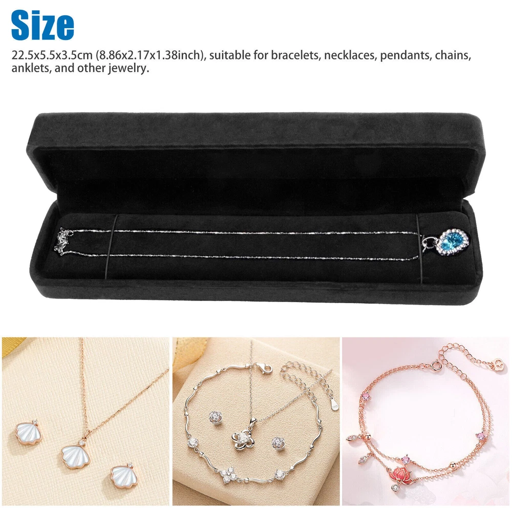 NEW-00023 22.5x5.5x3.5cm Jewelry Necklace Chain Gift Box Storage Case Display Organizer PRODUCT DESCRIPTION Features: The jewelry box is made of high-quality flannel, high-end, with excellent hand feeling and gloss, very soft, plastic bottom plate, no deformation, can protect your jewelry, the hard necklace box will not break on the way. Size: 22.5x5.5x3.5cm (8.86x2.17x1.38inch), suitable for bracelets, necklaces, pendants, chains, anklets, and other jewelry. The unique design is impressive. If you run a jewelry store, our products will show the best shape of your products and attract more customers. Very suitable for special occasions such as weddings, Christmas, Valentine's Day, Mother's Day, Father's Day, graduation ceremony, birthday, and anniversary. Specifications: Material: Flannel, Rubber Color: Black Package Include: 1 x Necklace Box Shipping Contact Us Our products have been sent to the US warehouse. All items will be shipped via WINIT CORPORATION. In 2-5 working days, you will receive your items. Thank you and have a nice day. If you have any question about us or items, please contact us, we will reply it as soon as possible. Shipping Our products have been sent to the US warehouse. All items will be shipped via WINIT CORPORATION. In 2-5 working days, you will receive your items. Thank you and have a nice day. Contact Us If you have any question about us or items, please contact us, we will reply it as soon as possible. PaymentShippingReturn policyAbout usContact us Copyright © - Tongtool All rights reserved | Design:Tongtool