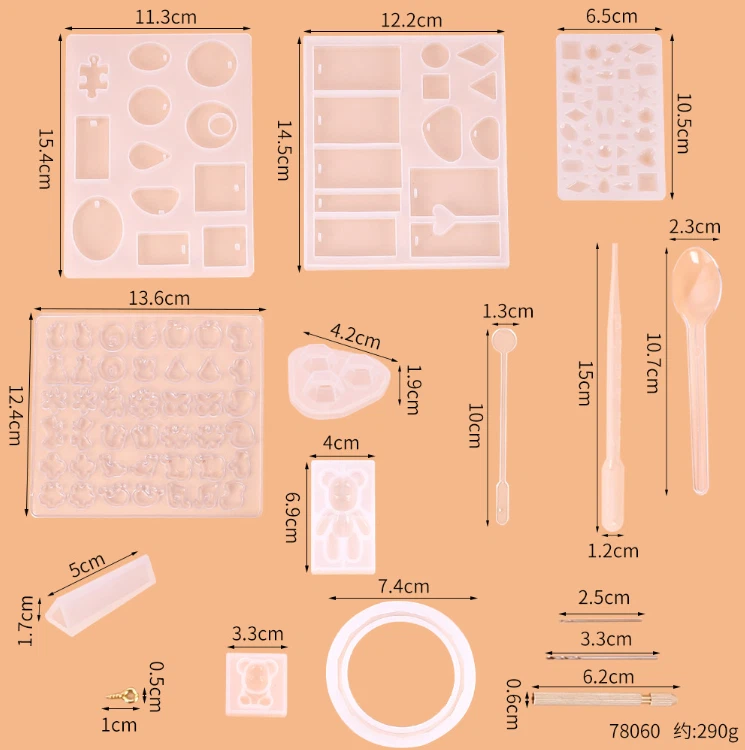229pcs Resin Casting Silicone Molds Epoxy Spoon Kit Jewelry Making Pendant Craft Product Feature π Material : High quality silicone resin jewelry molds material of silicone, which is flexible and smooth . Screw eye pins are made of metal alloy, stirrers, droppers and spoons are made of quality plastic. π Contains with Various Shapes : 229 pieces in total π Easy to Use and Clean : Many operating tools, help you make them more easily.Silicone material for easier cleaning. π Various Shapes : There are more than 100 various designs of resin molds include star shape, round shape, heart shape, letter, cubic shape, bracelet shape and bear shape, allow you to DIY your jewelry in different shapes easily. π§‘ Wide Applications : This re-usable resin casting mold set is a good choice for you to share your handicraft with your friends and family, enjoy your happy times together. Can be applied to DIY different handiwork and jewelry, such as key chain, earrings, necklaces, pendant, bracelets and more. Product Specification Type Resin Casting Molds Kit Material Silicone, plastic, metal Quantity 229pcs Color Clear Screw Eye Pins Color Gold, Silver Size As the picture shows Package Included 229pcs/set Payment Delivery details Terms of sales About us Contact us Payment We only accept several paymeny ways as follow: PAYPAL Delivery details All orders will be sent within 24 hours .And please allow 3-5 business days for delivery of order. Terms of sales Return: We accept return within 30 days,but we are not responsible for human damage. About us We are selling all kind of ceiling fan,crystal chandelier,pendant lights in high quality with best discounted price. Our goal is providing all our customers 100% satisfaction and best customer service. Contact us If you have any questions please contact us through "Ask seller a question" link. We will respond within 1 business day or less.