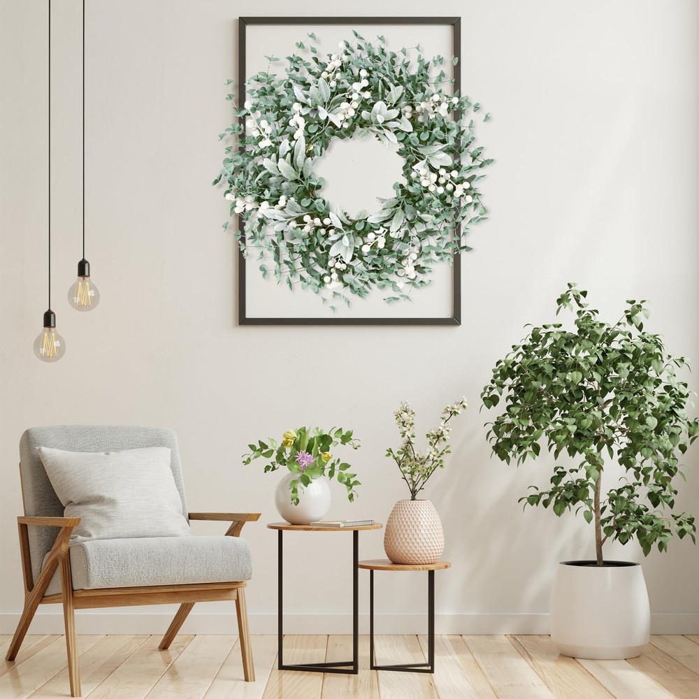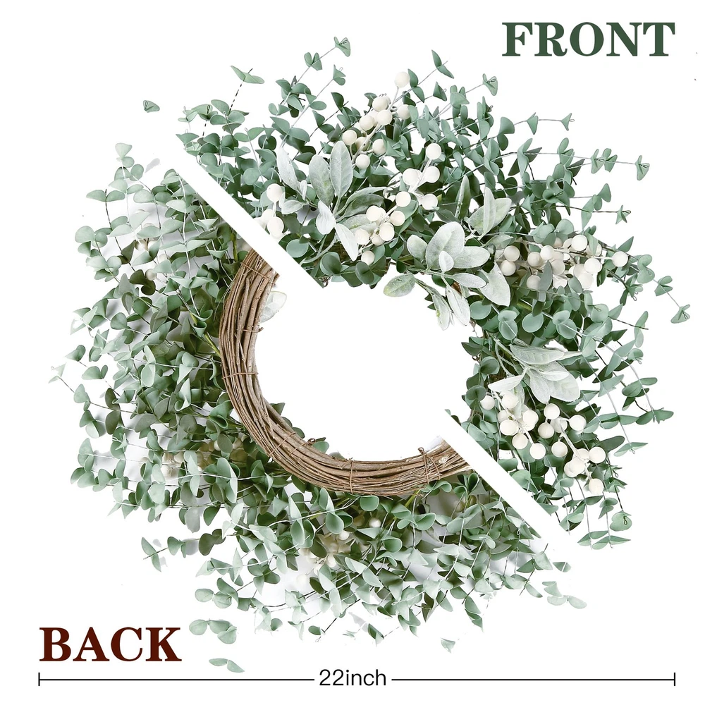 Looking for the perfect focal point to spruce up your front door or entryway? This artificial greenery leaves wreath is a perfect and welcoming front door decor. Product specification: Materials: soft foam Size: Outer diameter: 22’’ Color: Green Application: front door, window, indoors, outdoors, window, fireplace, farmhouse, living room, porch, centerpiece party, wedding, holiday and festival celebration Features: This spring wreath has a longer lifetime compared to the real one, the shape and color will stay fresh even a few years later, no need to water or sunlight. This handmade wreath can be used as a gift for holiday decoration, festival gift, wedding,anniversary and christmas day etc. Thisgreenery boxwood wreath has special design, made of soft foam leaves and flocked lambs ear with purely manual process. The appearance of the wreath is very natural, just like the real one. Package Included: 1×Artificial Greenery Leaves Wreath [HIGH QUALITY WREATH]: This artificial greenery leaves wreath is made of soft foam. The base is durable natural grapevine full of greenery leaves, flocked lambs ear and white berries. The entirely realistic wreath is vivid and vibrant. [PROPER SIZE]: 22 inches after fluffing. Since the wreath is packed in a relatively small box to satisfy transportation requirement, you need to expand the branches and adjust flowers into best shape and you'll get a 22 inch full wreath of enough size. [VERSATILE DECOR]:This greenery boxwood wreath is suitable for front door, wall, indoors,outdoors,window,fireplace,farmhouse, living room, porch, centerpiece party, wedding, holiday and festival celebration. It will provide your home a feeling of natural and vitality. [EASY CLEAN]: This flocked lambs ear wreath is convenient to clean, just wipe it with a try towel to make the wreath like brand new. The berries and branches are not easily falling apart. This wreath can be used for a long time. [NOTES]: If used outdoors, please make sure to hang it under the cover to avoid rain and snow. Please don’t hesitate to contact us if you have any questions, we will try our best to help you!