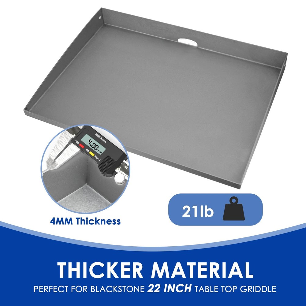 22" Flat Top Griddle Replacement Top for Blackstone 22 inch Tabletop Griddle, Food-grade Non-stick Coating Replacement Top use Original Integrated Grease Management for Blackstone 22" Grill Top Griddle Compatible Models: Perfect Fit for Blackstone 22 inch tabletop griddle. Features: ✅Designed specifically for the Blackstone 22-inch Countertop Grill Pan to ensure a perfect fit and outstanding performance. ✅Equipped with a food-grade non-stick coating to ensure even heating of food and easy cleanup. ✅Thoughtful non-stick coating makes it easy to get rid of stubborn residue, allowing you to cook and clean with ease. ✅Helps you achieve professional cooking results with ease and enhance your outdoor cooking. Reliable Customer Service: We are committed to ensuring your satisfaction with our product and are ready to address any concerns or inquiries you may have. High-Quality Flat Top Griddle Replacement Top. Upgrade your 22 inch griddle top with our 22" Blackstone Flat Top Griddle Replacement Top with Rear Grease System. Crafted with durable materials, this top ensures even heat distribution and easy cleanup, enhancing your cooking experience. Perfect Fit for Blackstone 22 inch Griddle. Designed specifically for the most Blackstone 22 inch Tabletop Griddle with Rear Grease System. Replacement parts for Blackstone 1813 1666 1891 1833 1840 1842 2166 1895 grill replacement parts and more, this replacement top provides a seamless fit and exceptional performance. (Does not fit Blackstone 22" combo grills) Note: Our griddle replacement flat top will fit your blackstone griddle, but not necessarily the Griddle Lid. Easy to Install: Designed for hassle-free installation, this replacement top for the blackstone 22 inch tabletop griddle is easy to set up, so you can get back to cooking delicious meals in no time. Versatile and Convenient: Whether you're cooking up pancakes, burgers, or stir-fry, this 22" Replacement Top offers versatility and convenience for all your culinary creations. Cooking Oil Protection: Product surface coated with a layer of cooking oil to protect, after receipt, please wash and seasoning after use, did not wash and use black is a normal phenomenon, will not cause harm to the human body. Color Variations: It's normal for the surface color to vary upon arrival. Some areas may appear darker due to the oil drying over time, but rest assured, this does not affect safety or quality. Enhance Your Griddling Experience. Elevate your outdoor cooking game with the 22" Flat Top Griddle Replacement Top. Whether you're grilling up breakfast, lunch, or dinner, this high-quality accessory for your 22 inch blackstone griddle for grill top will help you achieve professional results with ease.