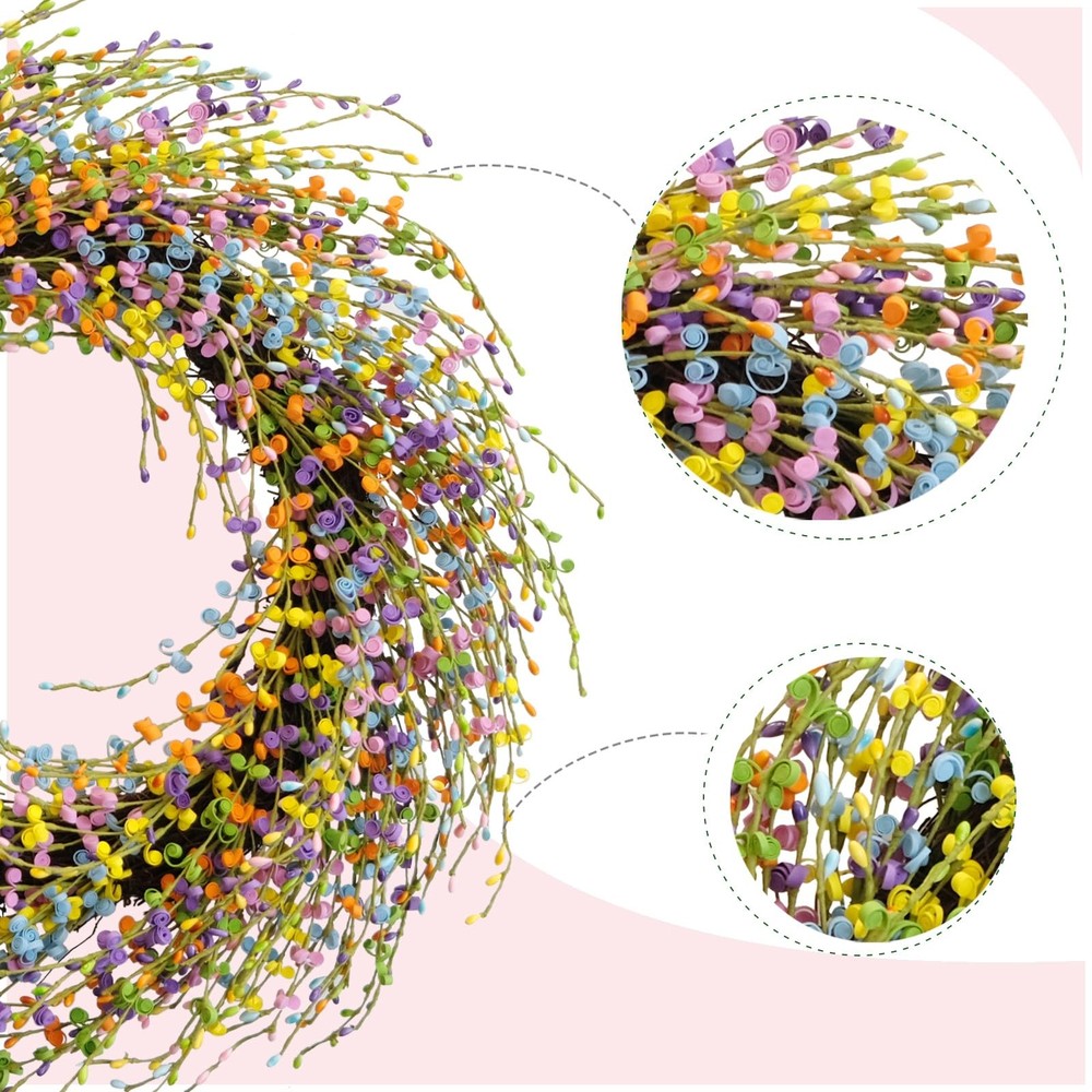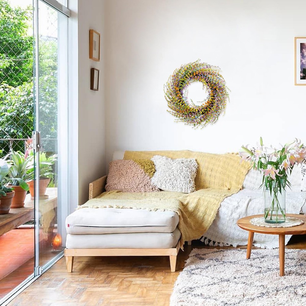 This wreath is absolutely stunning! The colors are vibrant yet elegant, and the soft-touch leaves feel so realistic. The mix of pastels and bright shades makes it perfect for any season, especially spring and summer. It adds a cheerful pop of color to my front door, and the quality is fantastic—doesn’t fade or look cheap. Love that it works year-round! A must-have for anyone who loves festive, stylish home decor.