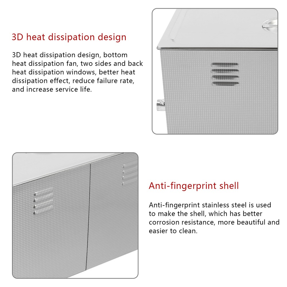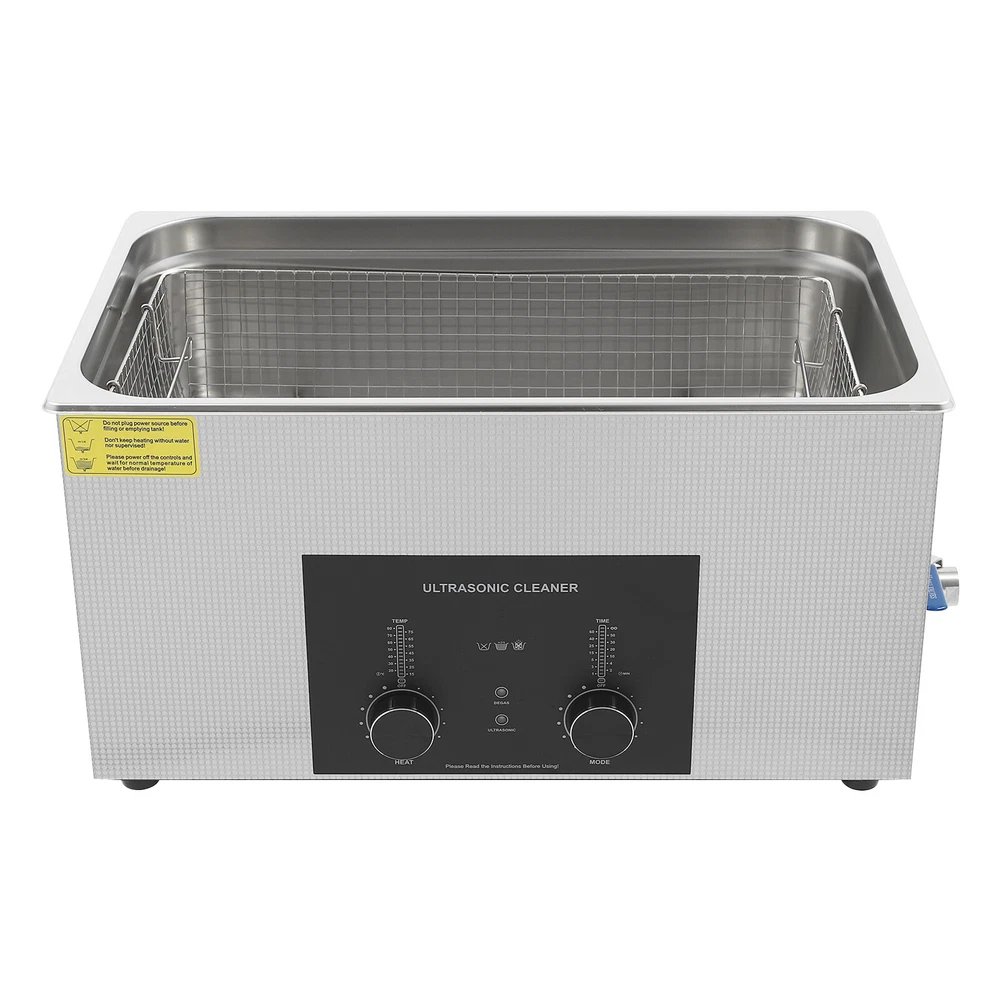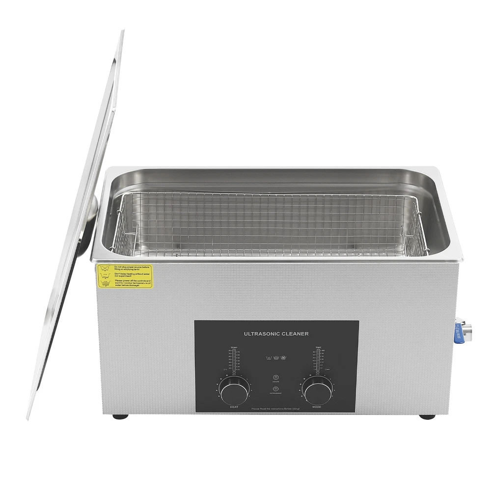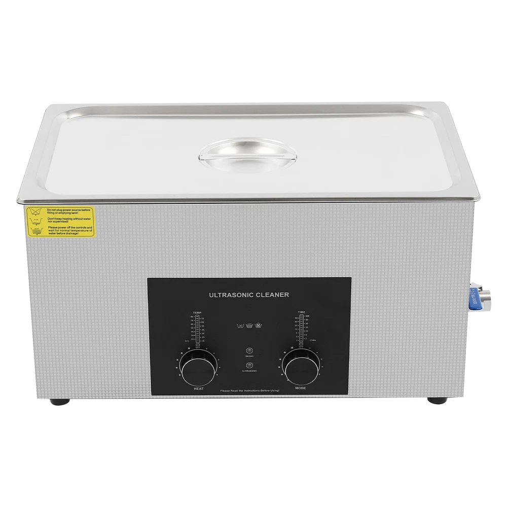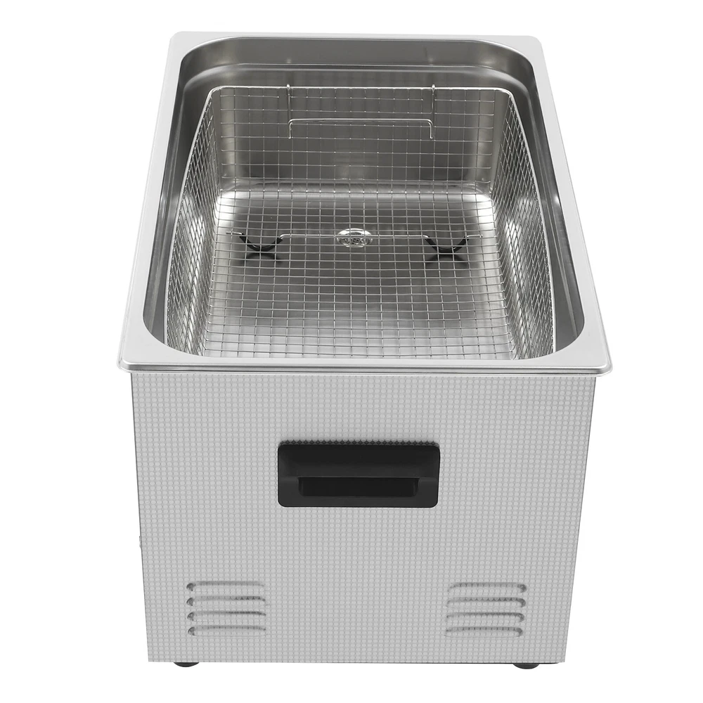 Specifications Color: Silver Style: Modern Shape: Rectangular Material: 304 Stainless Steel, 201 Stainless Steel Mount Type: Countertop Assembly Required: Yes Plug Type: US Standard Power Supply: AC100-120V, 60Hz Ultrasonic Frequency: 40Khz Ultrasonic Power: 480W Heating Power: 500W Power Cord Length: 1.5m/4.92ft Temperature Range: 15-80℃/59-176℉ Time Setting Range: 1-60min Inner Capacity: 22L/5.81Gal Effective Capacity: 17.5L/4.62Gal Drain Valve Diameter: 1/2" Product Inner Size: 50*30*15cm/19.69*11.81*5.9in Cleaning Basket Size: 46.5*26.5*8.7cm/18.3*10.43*3.43in Packaging Size: 66*42*35.5cm/25.98*16.54*13.98in Gross Weight: 12.47kg/27.49lbs Net Weight: 10.4kg/22.93lbs Package Included 1* Ultrasonic Cleaning Machine 1* Cleaning Basket 1* Power Cord 1* English Ultrasonic Jewelry Cleaning Machine 22L Ultrasound Watch Glasses Cleaner 480W US Description~~ Specifications Color: Silver Style: Modern Shape: Rectangular Material: 304 Stainless Steel, 201 Stainless Steel Mount Type: Countertop Assembly Required: Yes Plug Type: US Standard Power Supply: AC100-120V, 60Hz Ultrasonic Frequency: 40Khz Ultrasonic Power: 480W Heating Power: 500W Power Cord Length: 1.5m/4.92ft Temperature Range: 15-80℃/59-176℉ Time Setting Range: 1-60min Inner Capacity: 22L/5.81Gal Effective Capacity: 17.5L/4.62Gal Drain Valve Diameter: 1/2" Product Inner Size: 50*30*15cm/19.69*11.81*5.9in Cleaning Basket Size: 46.5*26.5*8.7cm/18.3*10.43*3.43in Packaging Size: 66*42*35.5cm/25.98*16.54*13.98in Gross Weight: 12.47kg/27.49lbs Net Weight: 10.4kg/22.93lbs Package Included 1* Ultrasonic Cleaning Machine 1* Cleaning Basket 1* Power Cord 1* English Manual Description This ultrasonic cleaner's high-frequency ultrasonic waves can delve into microscopic crevices, breaking down grease and stains adhering to jewelry, spectacles, tableware, braces, and other miniature, intricate items. It features a knob-type timer and temperature control design for a simple operation that simplifies cleaning tasks, bringing technological convenience to your daily life. Key Features Quality and Reliability : The product is made of 304 stainless steel and 201 stainless steel, which is resistant to rust, corrosion, and deformation, giving the product a long service life and excellent working performance. Efficient Cleaning: Different from other cleaning technologies, 40Khz ultrasonic technology can remove dirt on the surface of objects, and penetrate blind holes, and cracks, thus thoroughly cleaning the dirt that cannot be cleaned by hand without damaging your belongings. Moreover, the degas mode can eliminate ultrasonic fatigue and improve cleaning results. Adjustable Design: The product comes with knob-type temperature (59-176℉) and time control (1-60min) to meet the cleaning needs of different objects. Large Capacity: The 4.62gal effective capacity and large cleaning basket (18.3*10.43*3.43 inches) can easily hold and clean most of your watches, jewelry, and more. Efficient Heat Dissipation: The heat dissipation windows and the powerful cooling fan can accelerate heat dissipation, reduce failure rate, and increase service life. Safety Guarantee: The product is equipped with a fuse, when the circuit is overloaded, it will automatically fuse to stop the power supply, avoiding damage to the machine and injury to you. Simple Operation: Equipped with an intuitive and user-friendly operational interface, this product simplifies activation and adjustment of cleaning time and temperature settings, making it accessible to you. Easy to Clean: The fingerprint-resistant stainless steel shell, simple structure, and smooth surface make it more convenient for daily cleaning. Details Cleaning Basket: It can reduce scratches during cleaning to better protect your valuables items, and can also be used to drip-dry items. Side Handles: They make it convenient to move the machine. Drain Valve: It allows you to drain standing water and cleaning fluids more easily. Top Lid: It can well seal the machine to reduce heat loss and noise. Meanwhile, the handle on the top allows you to easily pick up the lid. Sturdy Feet: They prevent the product from sliding and enhance stability during operation. Application It can be used in homes, laboratories, the jewelry industry, industry, electrical industry, hospitals, and more. It is specially used for cleaning jewelry, eyeglasses, watches, dentures, dental instruments, clocks and watches, motorcycle parts, automobile parts, bicycle parts, hardware, tools, engine parts, and more. Notes Please check the size carefully before ordering. Please note that the heating is turned on when the preset temperature is higher than the actual temperature. Please note that the ultrasonic cleaning process can also slowly heat the cleaning liquid, so the temperature of the cleaning liquid is likely to be higher than the preset temperature. 304 stainless steel material makes the device resistant to weak acids and weak alkalis. However, please don't use strong acids or strong alkali. Please do not place items directly on the bottom of the cleaning tank and please put items into the washing basket for cleaning. It needs to be filled with 2/3 of the water and please avoid dry-burning. Please read the operating manual and label completely before use. And pay particular attention to the safety instructions included. Please allow the slight color difference caused by the shooting light and 1-3cm error due to manual measurement, and make sure you do not mind before you order. tu1 Payment Delivery details Terms of sales About us Contact us Payment We accept ebay payment 。 Fees such as import duties, taxes are not included in the item price or shipping costs. These charges are the buyer's responsibility. Delivery details Shipping: 2-9 working days to: USA Terms of sales We maintain high standards of excellence and strive for hundred percent customer satisfaction. Feedback is very important to us. We hope that you contact us immediately before you giv