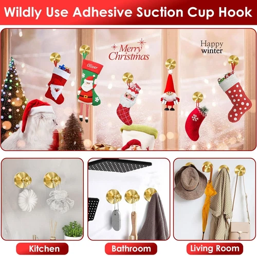 Gold Wreath-Hanger, 22 LB Strong Stainless Steel Suction-Cup-Wreath-Hooks, 2 Pack Wreath-Door-Hanger Fall Halloween Christmas Decorations, Welcome Sign for Front Door Indoor Outdoor, Reusable Holder LuxeFusion Product Description 2 Pack Gold Stainless Steel Suction Cup Wreath Hangers – Stylish, Scratch-Free & Secure Decoration Solution Elegance Meets Strength Suction Cup Hooks for Wreaths – Without the Mess Let your holiday or seasonal décor take center stage with our premium gold metal window door hanger – the perfect blend of beauty and durability. Designed to hold your decorations securely without scratching surfaces or leaving any sticky residue behind Suction Cup Wreath Hooks for Glass Window, No Damage These heavy-duty suction cups provide a secure hold on smooth, non-porous surfaces like glass, mirrors, tiles, or metal – no wires, glue, or screws required! Easy to install and remove without damaging doors, windows, or walls Wreath Door Hanger Sleek Gold Finish – Adds a Touch of Class Unlike plastic hooks that can look cheap, our metal wreath over the door hooks are finished in a rich gold tone that elevates any décor. Perfect for front doors, windows, and even interior spaces like bedroom doors, mirrors, or bathroom, kitchen tiles Wreath Garland Hooks Perfect for All Seasons & Holidays Whether you're hanging a fall wreath, Halloween sign, Christmas swag, or winter greenery, these stylish door hanger hooks offer the perfect seasonal solution. Also ideal for hanging stockings, garlands, or lightweight accents inside your home Features Gold Wreath Hanger - Functionality Meets Style: Let the beauty of your decor shine without scratches or stains with suction cup hooks for wreaths. Crafted from premium stainless steel with a super sticky silicone base and advanced vacuum suction technology, the wreath door hanger is robustly constructed, rustproof, and highly durable, and won't reduce adhesion over time. The sleek brushed metallic finish blends seamlessly with year-round decorations, maintaining a luxury and elegant look Heavy Duty Suction Cup Wreath Hooks Can Hold Up to 22LBS: The upgraded metal wreath hangers for front door decor, combined with a powerful and bigger vacuum suction base, deliver incredible strength and reliable support, capable of holding up to 22 lbs securely. Whether indoors or outdoors, in varying temperatures, the door hanger with double vacuum seal keeps any Easter, Fall, Halloween, Christmas decorations, even bathroom essentials, kitchen utensils, firmly in place without slipping Damage-free Wreath Hangers for Front Door Glass Window - Effortless Installation: Looking to hang beautiful decor without damaging surfaces? The suction cup wreath hook is the perfect solution! Enjoy quick setup in just seconds! Clean & dry your chosen surface, loosen the hook counter-clockwise, press firmly & twist clockwise to lock. No tools, no drilling, no mess. Easily reposition or remove with no sticky residue left behind. Perfect for wreaths & seasonal decorations or daily organization Versatile Year-Round Wreath Hooks for Every Season & Occasion: Elevate your home decor for every holiday and celebration. This 2-pack of garland hangers adds festive charm to your home, office, apartment, dorm room, RVs, stores or event. Whether it’s Fall wreath, Halloween wreath, Thanksgiving wreath, Christmas wreath, New Year wreath, Valentine’s Day wreath, Easter wreath, weddings, or parties decorations, these wreath hangers bring warmth, convenience, and timeless style to any décor theme Elegant Door Wreath Hanger Meets Practicality Indoor & Outdoor: Designed to work on non-porous and smooth surfaces like glass, mirrors, polished tiles, metal, acrylic, & plastic. Not for rough, textured, or painted surfaces. The sleek wreath holder complements any decor, making it perfect for displaying most wreaths, welcome signs, swags, bows, pew markers quickly & easily, and as utility hooks, keep a classy look, store hats, scarves, coats, wallets, keys, trinkets & more accessories in style Product Details Color: Gold Brand: JUUBAOOPN Material: Metal Finish Type: Brushed Mounting Type: Door Mount, Window Mount, Wall Mount Style: Modern Weight Limit: 22 Pounds Special Feature: Removable, Reusable, Heavy Duty, Non Slip, Rust Resistant Shape: Circular Theme: Christmas wreath, Halloween wreath, Easter decorations, Halloween decorations, Christmas decorations, Easter wreath, Fall wreath, Christmas decor, Thanksgiving wreath Item dimensions L x W x H: 1.9 x 2.36 x 2.36 inches Number of Hooks: 2 Surface Recommendation: Smooth Glass, Polished Tile, Smooth Metal, Mirror, Acrylic Plastic Maximum Weight Recommendation: 22 Pounds Product Dimensions: 1.9 x 2.36 x 2.36 inches Item Weight: 5 ounces Manufacturer: JUUBAOOPN Country of Origin: China Item model number: Hook-Gold-2P Finish types: Brushed Batteries required: No 🚚 Free Shipping All orders ship free and fast to your doorstep. 🔁 Easy Returns Satisfaction guaranteed. 30-day returns, no questions asked. 💬 24/7 Support Contact us anytime; we’re here to help, day or night. Brought to you by LuxeFusion – Quality you can trust.
