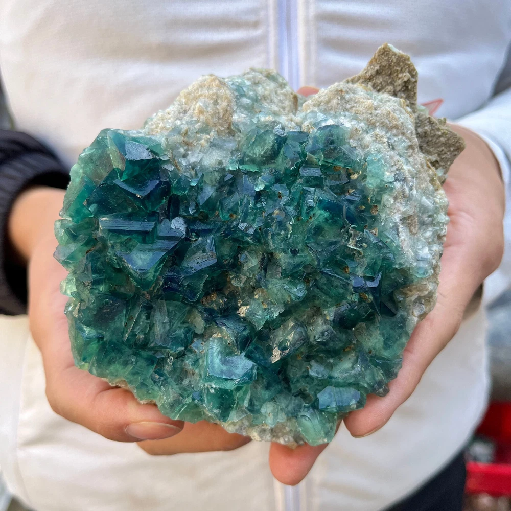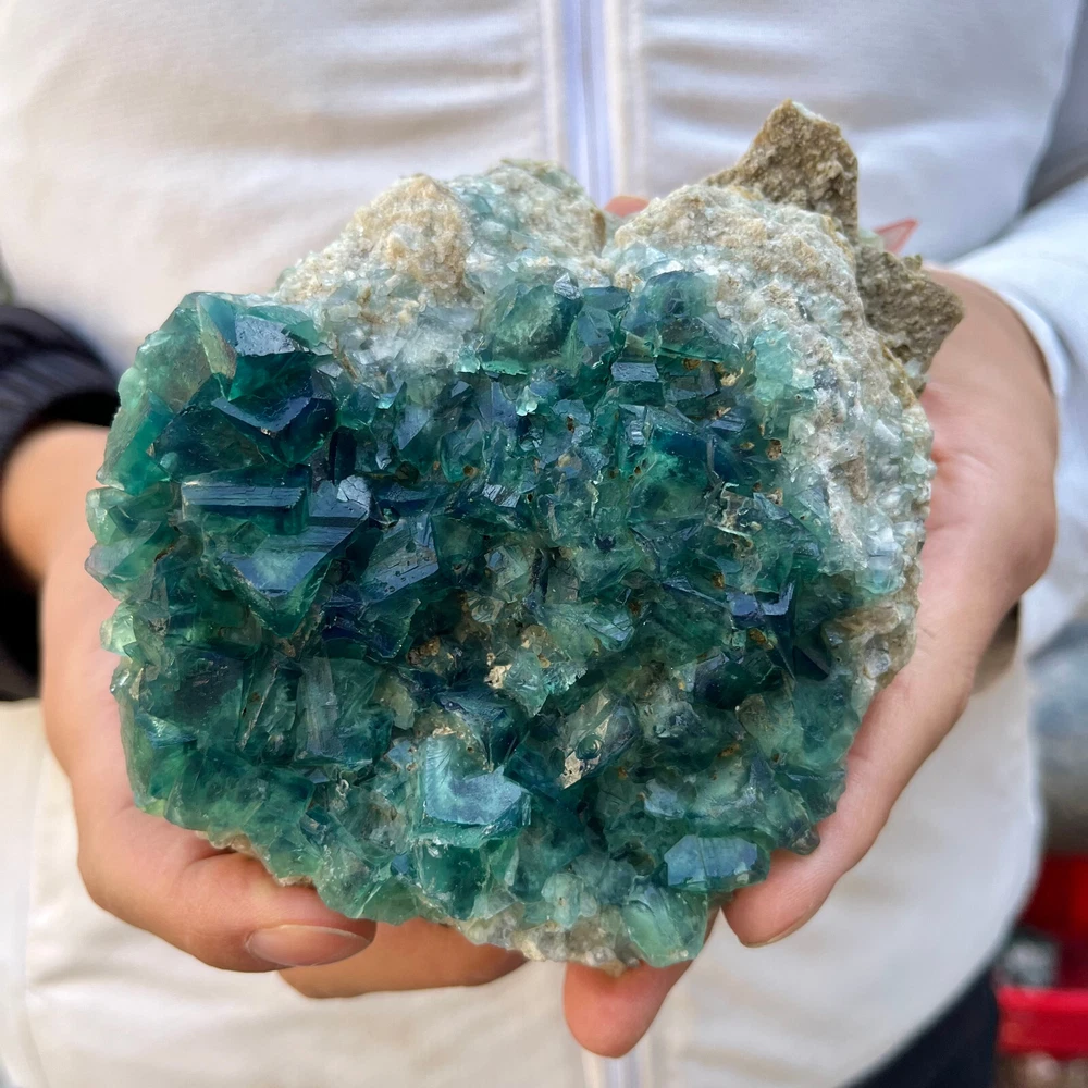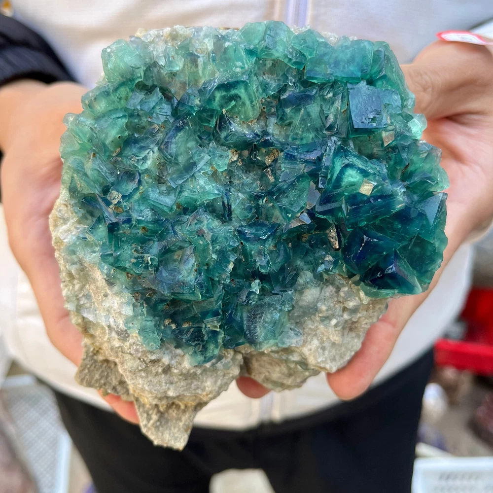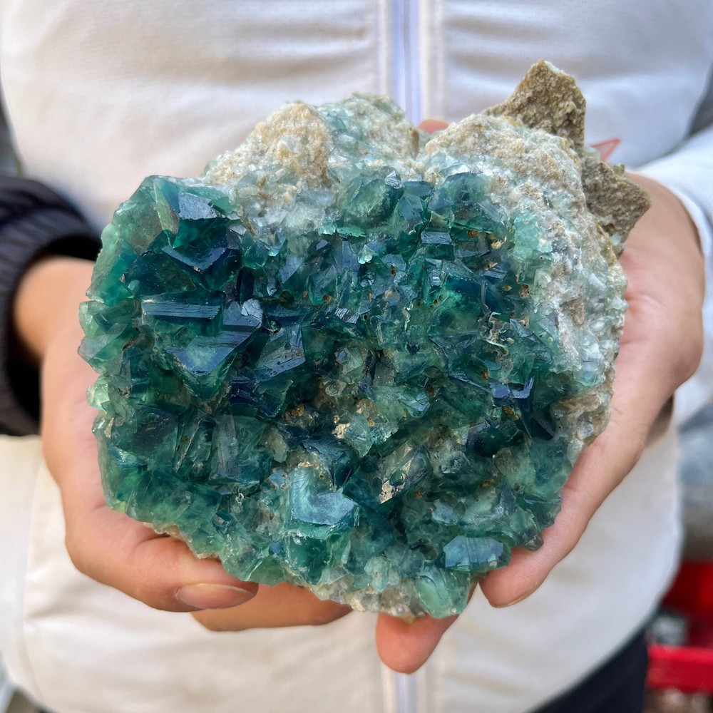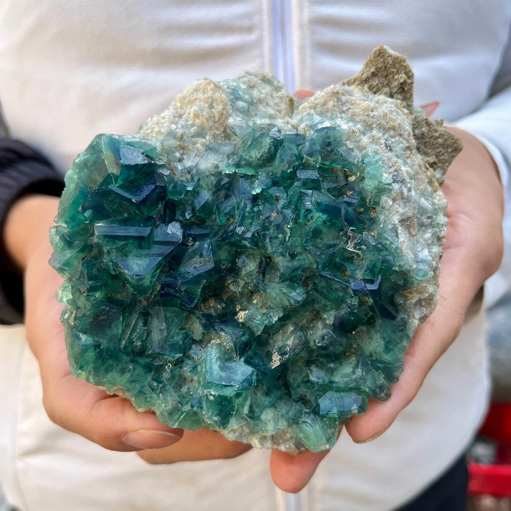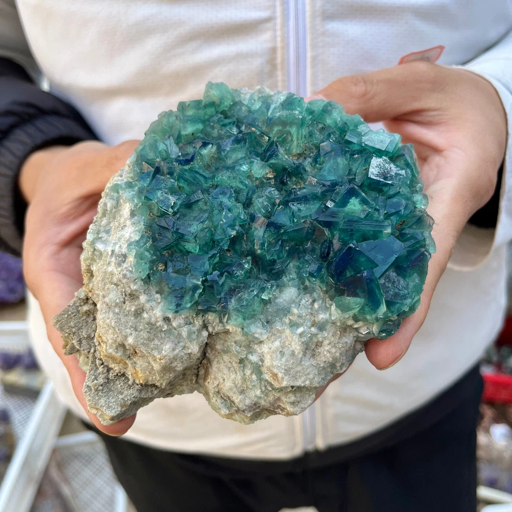 2.2LB Natural Green Fluorite Cube Quartz Crystal Cluster Mineral Specimen