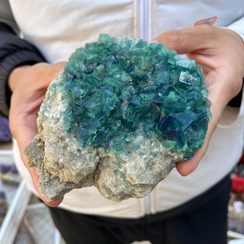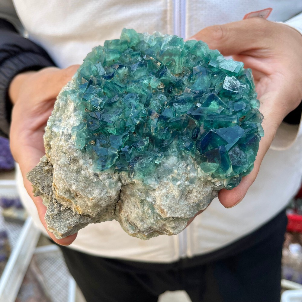 1. Amazing blue green hues in the fluorite. Item got here super quickly and it was wrapped completely in bubble wrap and tape. It looks exactly like the picture. It’s a solid chonk of a rock with interesting white flecks of crystal on the bottom. A+ transaction!!!