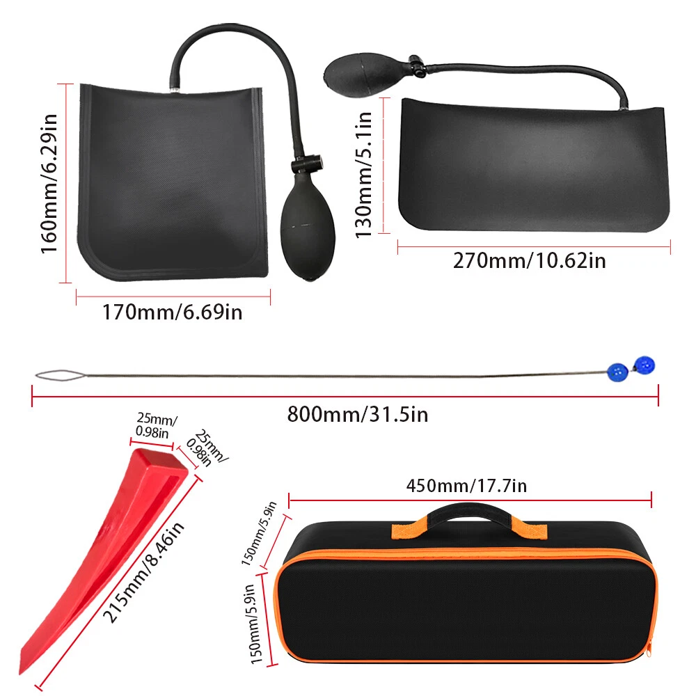 Store Categories Store Categories Other 22Pcs Emergency Auto Tool Window-Car Door Unlock/Lock Out Universal Tool Kits Product Description PRODUCT DESCRIPTION Widely used: 22 -piece kit for car audio modification, radio modification, door panel, line, sign, window decoration or car interior repair and furniture repair. Professional tool set can help you deal with unexpected situations in daily life and improve your work efficiency. Expansion tool: Solid 202F stainless steel, assembled in four parts, and the maximum length after assembly is 67 inches. With anti-slip soft rubber handle and barb protection, there is no need to worry about scratching the paint surface. CNC machine tools mill standard slots, which perfectly match the wrench caliber, and it is more convenient to disassemble the rod with a wrench. High-quality tools PVC environmental protection nylon seesaw, not easy to break, more and more convenient to disassemble vehicle instrument panel, audio panel, door side panel, roof and other decorative boards and accessory box covers, Equipped with 2 black airbags.Our air wedge pumps are made of high-quality TPU material, with smooth external and internal reinforcing ribs and PVC inserts inside, which makes it easier to insert into gaps to resist greater pressure. They can be used in homes and cars. Note: Do not over-inflate, so as not to damage bags or valves. Easy storage and portable design: The car emergency tool kit is equipped with a portable zipper storage bag, which can properly place and store all tools after use, without fear of loss. Packing list: 4 long-arm gripper connecting rods, 4 fastening anti-slip nuts, 2 mini wrenches, 2 black airbags, 1 red wedge, 7 blue PVC seesaws, 1 double-ball stainless steel wire drawing tool, 1 Oxford waterproof kit. Payment Policy Shipping Policy Returns Policy Payment Policy We accepts Payoneer only If you have any questions about the payment,please contact us through eBay message Shipping Policy ● We will arrange shipping for you within 48 Hours after payment cleared except the holidays. All items will be shipped from our US warehouse ● We always send the item to the address you give us on Payoneer to ensure the security of the item. If you have changed your address, or want us to ship to another address, please change to the new address when you pay us with Payoneer, otherwise we will not be responsible if the package is lost. Returns Policy To Return an item you must contact us and take photos of your item to clearly show any damage or unusual aspects of it. Approved returns will be subject to inspection on arrival. Items must be returned in original condition with all original packaging. All shipping and handing charges are non-refundable Return delivery costs are the responsibility of the buyer. We will cover the cost if sending replacement/repaired items. Within 7 days after receiving your products, we offers a no-hassle 7 day exchange/replace only if your items are found to be defective by manufacturer. Copyright © 2023 Dianxiaomi