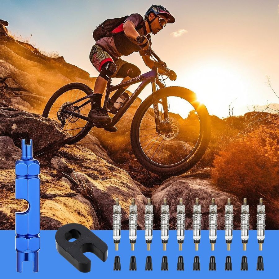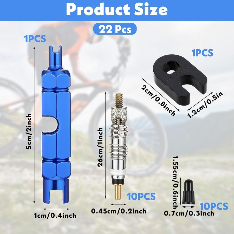 【Complete Package】: This 22pcs valve core removal tool set includes 10 valve core replacement parts, 10 valve stem caps, 1 blue valve core removal tool, and 1 black valve core dismantle tool. This comprehensive kit meets all your bicycle maintenance needs. 【High-Quality Materials】: The valve core dismantle tools are made of premium zinc alloy and ABS plastic, ensuring reliability, safety, and durability, preventing air leaks, and rejuvenating your tires. 【Compact and Portable】: The valve core repair kit is designed for convenience. The valve core measures 4.72 x 3.15 x 0.75 inches. Lightweight and easy to carry, perfect for on-the-go repairs. 【Easy to Use】: The valve core tool set allows you to easily tighten or remove valve cores on bicycles, cars, trucks, and other air-filled tires. Simply dismantle the old valve core, insert the new one, and tighten it using the provided tools. 【Wide Application】: This versatile tubeless valve core tool is compatible with various vehicles, including bicycles, cars, trucks, motorcycles, tractors, and ATVs, making it an essential tool for any cyclist or vehicle owner. Size: 4.72 x 3.15 x 0.75 inches.