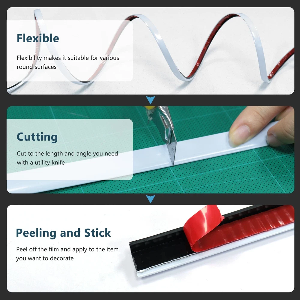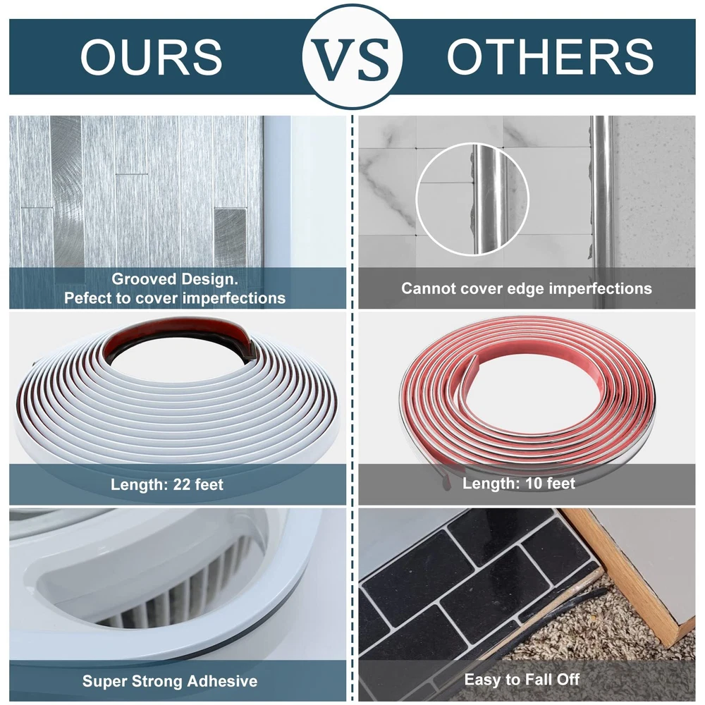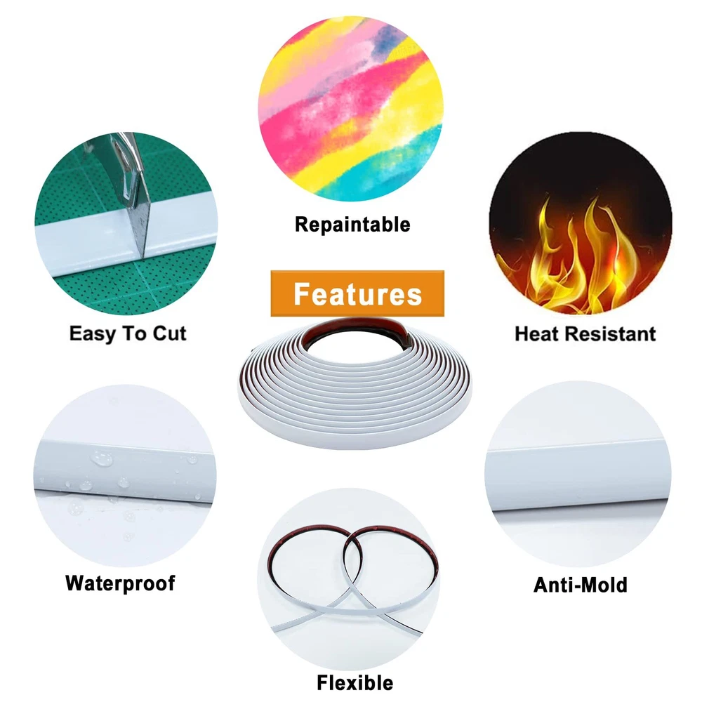 Extra Coverage: Benefit from 22ft of trim, 10% more than the standard 20ft, providing better coverage and flexibility in your home projects. Easy DIY: The wall molding trim is designed for easy installation. Self-adhesive tile trim, no extra glue needed, just peel and stick, no special tools required. Superior Adhesion: Our rubber trim molding adheres firmly to various smooth surfaces, leaving no residue upon removal. Safe & Flexible: The safe rounded corner design prevents your family from sharp edge injuries, making it ideal for various furniture applications. Enhance Your Space: Add a stylish touch to various applications including 90°external corners, stairs, fireplaces, cribs, tables, cabinets, and other furniture edges with our versatile trim.