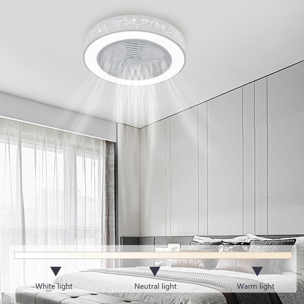22" Ultra-thin LED Ceiling Fan Light Remote Control Flush Mount Ceiling Fan Lamp Description This ceiling fan light will bring a cool breeze and soft light to your home, making your room more cozy and warm. It comes with six wind speeds, which can bring you a comfortable and controllable wind. The infinitely dimmable function meets your different lighting needs. The remote and App control methods provide you with a high-quality and convenient life. Key Features Build to Last: Made of high-quality iron, ABS, and PVC materials with the matt paint process, this product is resistant to corrosion, rust, and abrasion and has a long service life. Stylish Appearance: The round lampshade with flower patterns brings this product a beautiful appearance, and such an eye-catching outlook will add a touch of elegance to your room and show your good taste to your guests. Dimmable Light: The product comes with three color temperature adjustments (3000K, 4200K, 6500K) and step-less control of the light brightness, which can create the atmosphere you need. Excellent Fan Performance: The product comes with an air guide wheel function to spread the wind evenly throughout the room. In addition, you can adjust the six wind speeds and the reversible function to meet your needs. Thoughtful Design: The 2-hour timer function allows you to fall asleep with a cool breeze. The memory function adds even more convenience by saving you the time of setting the ceiling fan light each time you turn it on. Smart Control: The product allows you to easily control and adjust the fan and light modes via remote control and APP, adding to your life extra convenience. High Safety: The fan blades are hidden inside a round cover, which can avoid accidents caused by getting caught in the blades, making it much safer than traditional fans. Easy to Clean: The smooth surface and simple structure allow you to remove the dust on the surface of this light with a towel. Ideal Gift: With practical function and a beautiful appearance, it can be an ideal housewarming gift for your friends, families, and colleagues. Details Copper Motor: The copper motor is sturdy and durable, and will provide the fan with strong power and a low noise(about 40db) during running. Rounded Edges: The burr-free edges can effectively protect your hands and skin from being scratched during installation or cleaning. Application It is suitable for rooms with 161.46-269ft² areas such as living rooms, bedrooms, kitchens, dining rooms, entrances, hallways, foyers, doorways, basements, restaurants, cafes, stores, children's rooms, and nurseries. Specifications Color: White Material: Iron, ABS, PVC Process: Matt Paint Motor Type: Copper Motor Mount Type: Ceiling Mounted Light Source: COB Voltage: 110V Efficiency: E Fan Speed Gears: 6 Time Setting: 2H Motor Power: 15W Motor Speed: 950rpm Noise: About 40dB Brightness Adjustable Range: 60LM Three Adjustable Color Temperature: 3000K, 4200K, 6500K Illumination Area: 15-25㎡/161.46-269ft² Suitable Room Height: 2.6m/8.53ft Battery Type: 2*AAA Batteries(Not Included) Remote Control Distance: 5-10m/16.4-32.8ft Product Size(D*H): 55*22cm/21.65*8.66inch Packaging Size: 52*52*25cm/20.47*20.47*9.84inch Gross Weight: 4kg/8.82lbs Net Weight: 3kg/6.61 Package Included 1*Ceiling Fan Light 1*Remote Control Other Accessories for Installation Notes Please check the size carefully before ordering. The remote control does not include batteries, so you need to prepare 2 AAA batteries yourself. For a safe and secure installation, please make sure that all wires are connected and all screws are tightened into the ceiling. When unpacking, be careful not to pull with the wires as a bad connection may result. Please do not turn on the power until fully assembled. Please conduct a power test before installation. We recommend installation by professionals. Please do not install it next to the air conditioner or heater, which will affect the service life of the product. Please wear electric insulation gloves (not included) and avoid scratching the surface of the product and the electric wire when installing. Please use this item within the applicable voltage range and clean it regularly. Please wipe with a soft cloth, it is not suitable to clean with cleaning agents. Please allow the slight color difference caused by the shooting light and 1-3cm error due to manual measurement, and make sure you do not mind before you order. Payment Delivery details Terms of sales About us Contact us Payment We accept ebay payment 。 Fees such as import duties, taxes are not included in the item price or shipping costs. These charges are the buyer's responsibility. Delivery details Shipping: 2-9 working days to: USA Terms of sales We maintain high standards of excellence and strive for hundred percent customer satisfaction. Feedback is very important to us. We hope that you contact us immediately before you give neutral or negative feedback, so that we can address your concerns. It is impossible to address issues if we do not know about them! About us Your satis faction is our ultimate goal. We work hard to earn your trust and future business. Our certified technicians have tested each item before shipping. The unit comes with 1 year limited warranty on all manufacturing defects. a) If you receive a defective item, you may return it or ask for a discount. Please contact us within 14 days after you receive the package. b) What you returned must be intact and in its original packaging as re? u. Customer is responsible for shipping costs of the returned item. c) We will cover the cost of shipping back t with the shipping rate indicated in the registration page. We will send you a new unit or refund the full payment you paid. Thank you. Contact us Business Hour Business Hour: Monday To Friday: 8:30 AM to 5:00 PM (Beijing China time) Due to time zones, our reply to your questions may not be immediately. But within above working time, we will reply your email within 24 ho