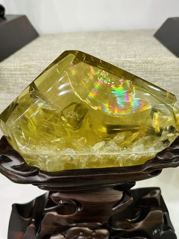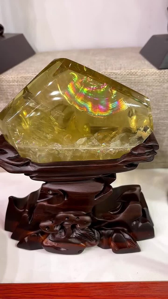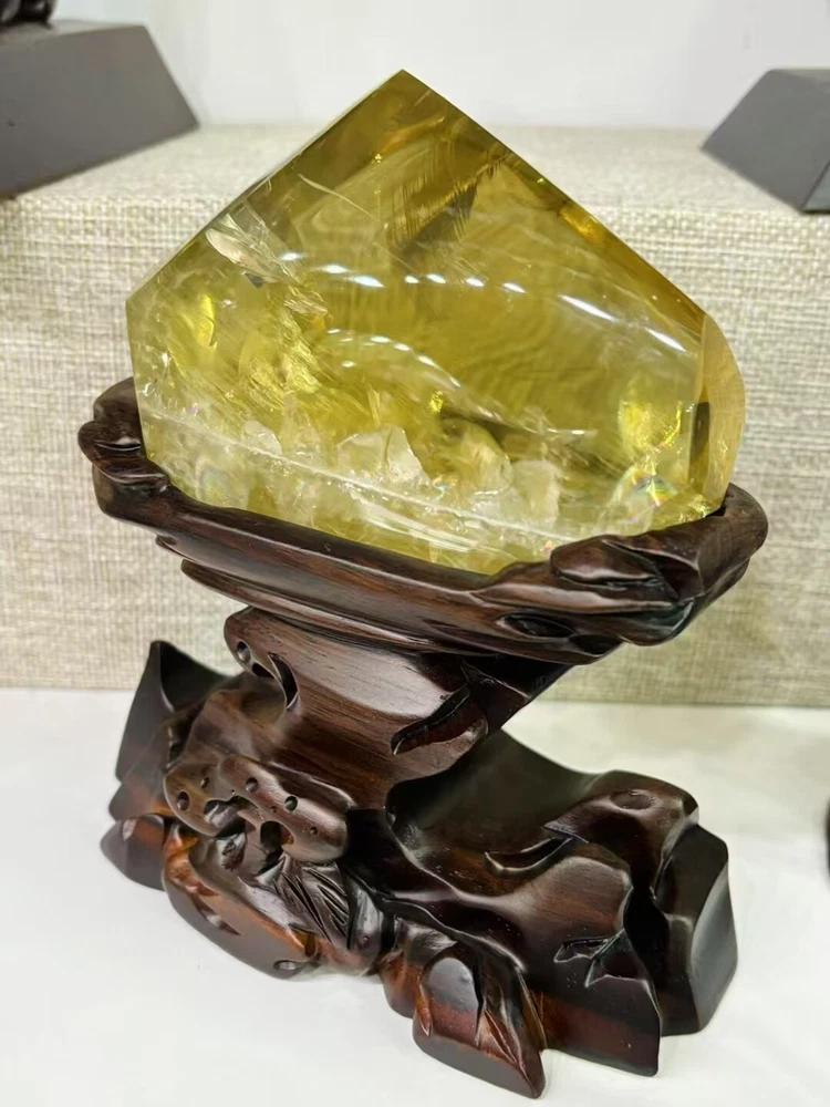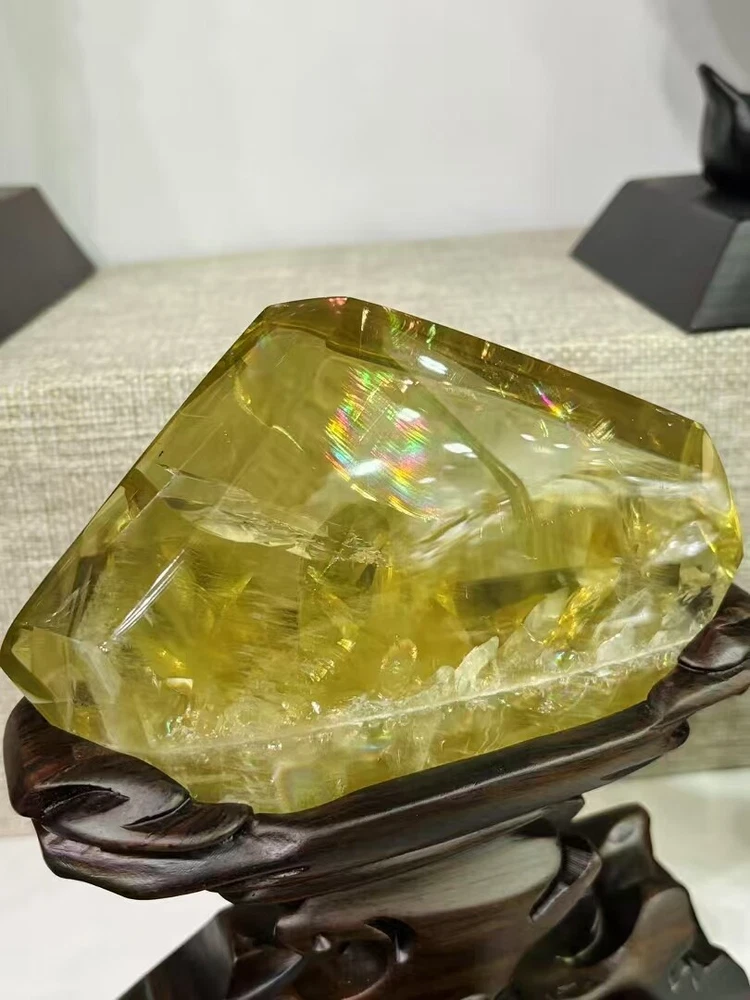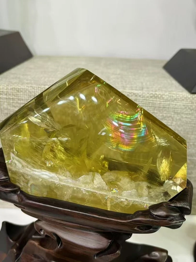 2.2lb Natural Rainbow Citrine Quartz Crystal Specimen with Stand for Reiki Decor