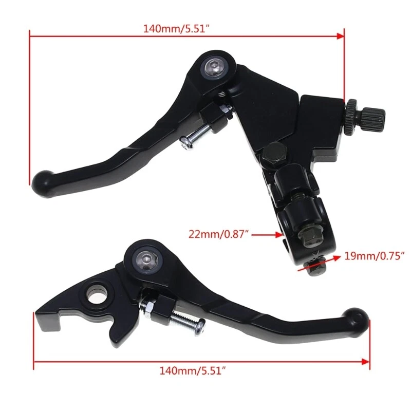 Features: Fit For 22mm 7/8" handlebar. The folding-clutch lever and brake lever are applicable to the modification of off-road vehicles and ATV spare motorcycles. The brake lever is foldable, you do not need to worry about your lever breaking. Easy Installation, No Modification Required. Made of aluminium and anodized in the same color for high durability and no fading which is corrosion-resistant and rust-proof. Specifications: Material:Aluminum Alloy Package Includes: 1Pair Clutch Brake Lever note: Please allow 1mm errors due to manual measurement. Due to the difference between different monitors, the picture may not reflect the actual color of the item.