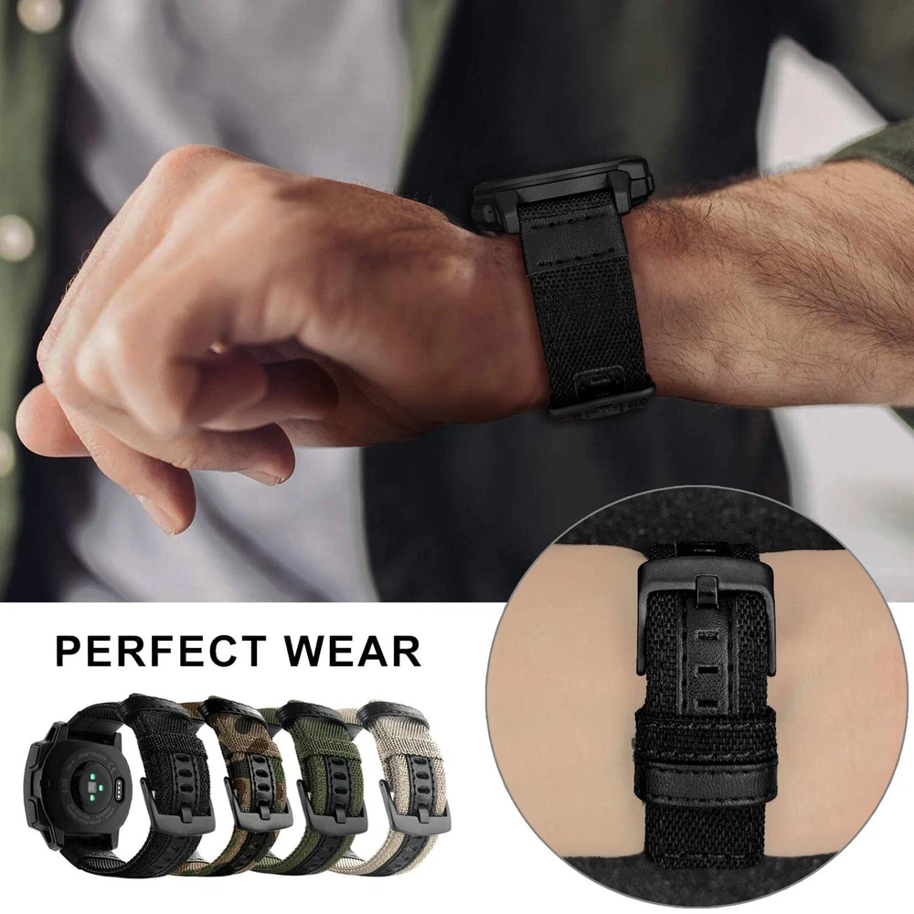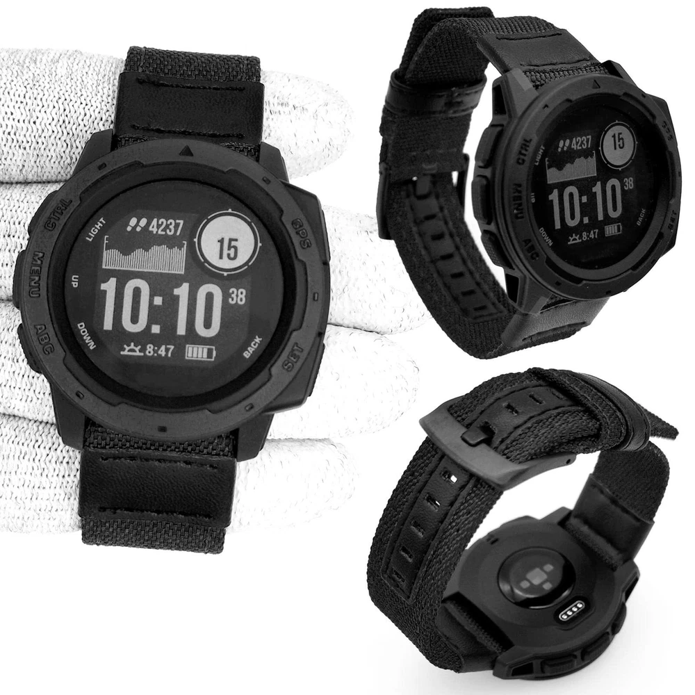 Notice: -- Watch Band only, Smart Watch not included. From , Smart Watch Accessories Brand -- 22mm Band Width -- Made of woven nylon, absorbent and fine craftwork make it comfortable to wear -- Military Sports Style design, give your smartwatch a new whole look and experience,, -- Easy and simple installation or removal. -- Fit wrist size 6.12"-9.4"(150mm-240mm) Compatible with Garmin Smartwatch Version: -- Instinct 2 / Instinct 2 Solar / Instinct 2 Surf / Instinct 2 Tactical (Not included Instinct 2S) -- Instinct -- Instinct Tactical -- Instinct Tide -- Instinct Esports -- Instinct Solar What's in Package: 1 x 22mm Nylon watch band 1 x Removal pin 2 x Connector pins ▶ Compatible with Garmin instinct / instinct 2 series, 22mm watch band Compatible with Garmin Instinct Tactical / Instinct Tide / Instinct Esports/ Instinct Solar, Instinct 2 / Instinct 2 Solar / Instinct 2 Surf / Instinct 2 Tactical (NOT included Instinct 2S) . ONLY Watch Band, NOT inclued smart watch. ▶ Made of durable and sweatproof nylon fabric,be shock-absorbent and non-slip, comfortable and breathable feeling. Military Sports Style design, give a whole new look of your Instinct watch. ▶ Stainless Steel Adjustable Buckle, According to the circumstance of individual wrist, fit wrist size 6.12"-9.4"(150mm-240mm) . ▶ Easy Installation / Remove: The nylon band can be installed onto Instinct Watch Lugs (Come with package) on both ends precisely and securely. Easy and simple installation or removal. ▶ We are strict in product quality control, but please feel free to contact us if there are any scratches or defects by any chance.We will correspond promptly to change or refund.