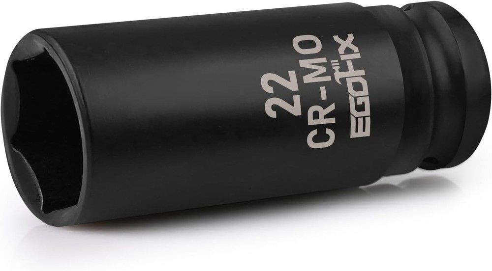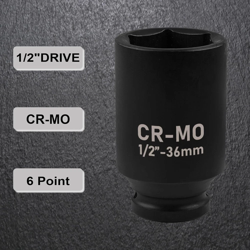 22mm Socket 1/2" Drive Deep Impact Metric Socket,CR-MO 6 Point 【Heavy-duty Material】: Professional-grade axle nut socket gives ultra-flexibility and tightness. All sockets are made of Chromium Molybdenum (CR-MO), with black phosphoric acid coating on each socket surface, which greater shatter-resistant, rust stains prevention than those made from CR-V steel. Each has highly visible laser-etched marking for easy identification even in low light conditions. 【6-Point Socket Design】: 6-point flank drive of 22mm socket for tight hold without damaging fastener corners. For easy removal of axle shaft nuts to meet your job requirements. 【Great Choice】: This 22mm impact socket 1/2 drive deep socket is ideal choice for any Home maintenance, Garage and Automobile repair, DIY home improvement. 【Highly compatible】:1/2-inch drive 22mm impact socket is made to work with a wide range of tools. 【High-quality Experience】:We have full confidence in our socket products and believe that they can improve your work efficiency and become a reliable assistant in your daily life.