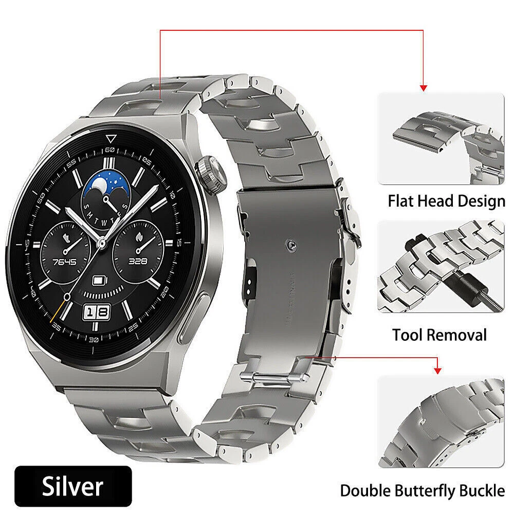 22mm Titanium Metal Link Watch Band Strap For Samsung Galaxy Watch/Huawei/Garmin Material: Strap links: Titanium Clasp: Stainless steel Features: - Brand new and high quality - Perfect stitching,Well polished,bands length can be easily adjusted to fit your wrist. - Three different color for you to choose. - Built from sturdy material. - Effortlessly complement your style with our stunning Watch Band. - Very comfortable to wear and easy to install. - Replace Galaxy Watch watch band easily and directly. - Ensure your watch in steady and secure. - Designed for ultimate comfort while offering a timeless, classic look to your Watch and your style. Watch Band -Use environmentally friendly, anti-allergenic , come with spring pins, easy to remove or connect to your smart watch. -Watchband width : 22mm -Fits wrist size: 6.49"-8.66" (165mm-220mm) , the size can be adjusted according to the circumstance of individual wrist by a tool. Packing List : 1 * Strap (not including watch) 1 * Band length adjustment tool Payment Delivery details Terms of sales About us Contact us Payment 1. PayPal payment accepted only. 2. Items will be shipped to your eBay address. Please make sure it is correct. Delivery details We only ship to ebay address! If you want to ship to other address, please change your ebay address before making a payment. Items will be shipped within 2 business days on payment received. Items are shipped from China Post using Airmail, reach most of the countries within 12 to 25 business days. USA/Canada 10-22 days United Kingdom 12-25 days most countries in Europe 15-30 days Delivery time depends on destination and other factors, it may take up to 20 business days. If you don't receive the item after 30 days, please contact us, we'll investigate and solve the delivery problem. Customs duty is obligation and liability of a citizen in your country, so buyer should be responsible for any tax and custom duty incurred. Generally, the delay or failure delivery is sometimes caused by the policy of different customs. For example, Laser Pointer is unacceptable in some countries. Therefore, please double check your local customs policy carefully before purchase. Or, we will NOT be responsible for any failure delivery related destination customs issue. Terms of sales 1. All products have been checked and packaged in good condition before dispatch. 2. In case the item is defective, please inform us within 30 days of receipt, we will replace a new one. No Refunds are offered. 3. Buyers have to pay for the return cost and we will pay the cost for resend. About us Give me a message through ebay or e-mail. Contact us Please send the message to us. Thanks