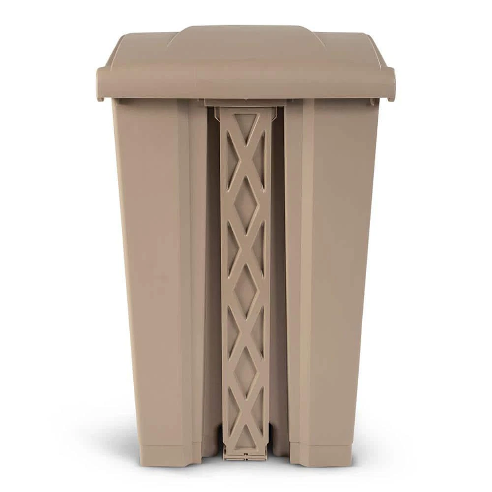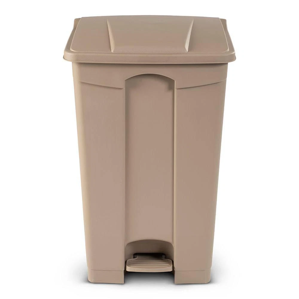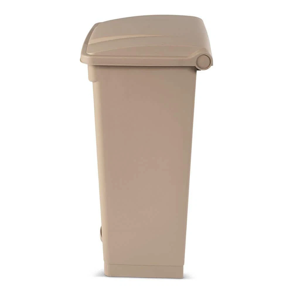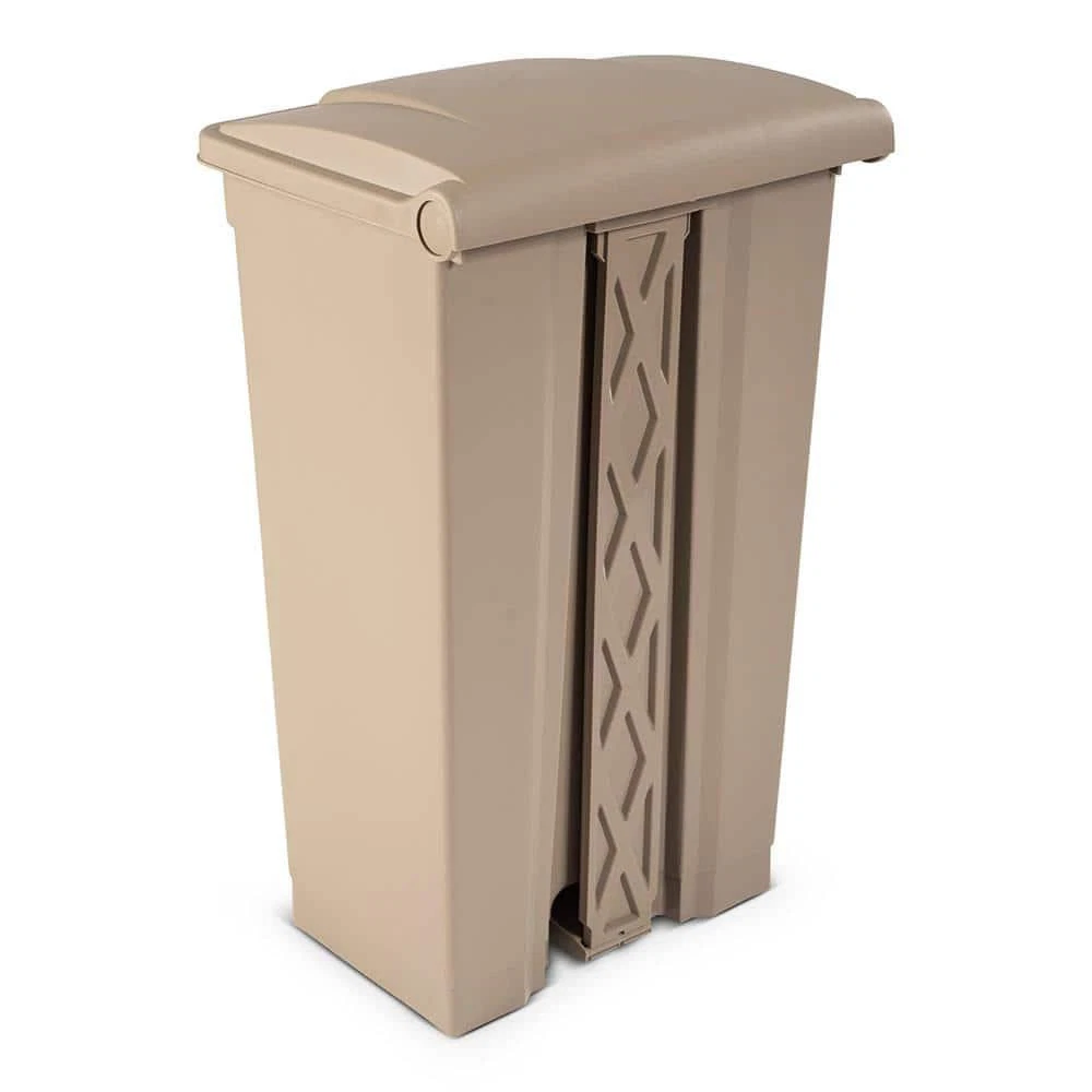 23 Gal. Beige Step-On Trash Can Measures 32.28 in. H x 15.35 in W X 18.89 in D Hand-free foot pedal and swing lid prevent cross contamination The trash bin is easy to clean and sanitize Toter's step-on pedal trash cans are the ideal garbage cans and recycling bins for any workspace. The space-efficient shape can fit anywhere a garbage can or recycle bin is needed. The fully-functional integrated foot pedal ensures the swing lid stays open for easy-to-use, hands-free lid opening and closing. Trash Bags are easy to replace as well, and the bag holder on the garbage bin ensures the bags stay securely attached. Available in multiple sizes and colors. Bucket/Tub Material: Polyethylene Capacity: 23 GA-Gallon Color: Beige Color Family: Beige/Bisque Hub Required: No hub connection available Indoor/Outdoor: Indoor,Outdoor Lid/Top Mechanism: Step Location: Commercial Material: Polyethylene Pack Size: 1 Remote Access: No Remote Access Requires Hub: No Hub Required Returnable: 90-Day Shape: Rectangle Trash and Recycling Features: No Additional Features Trash and Recycling Product Type: Trash Can Voice Control Hub Required: No Voice Control Works With: No additional compatibility Certifications and Listings: No Certifications or Listings Product Depth (in.): 18.89 in Product Height (in.): 32.28 in Product Width (in.): 15.35 in