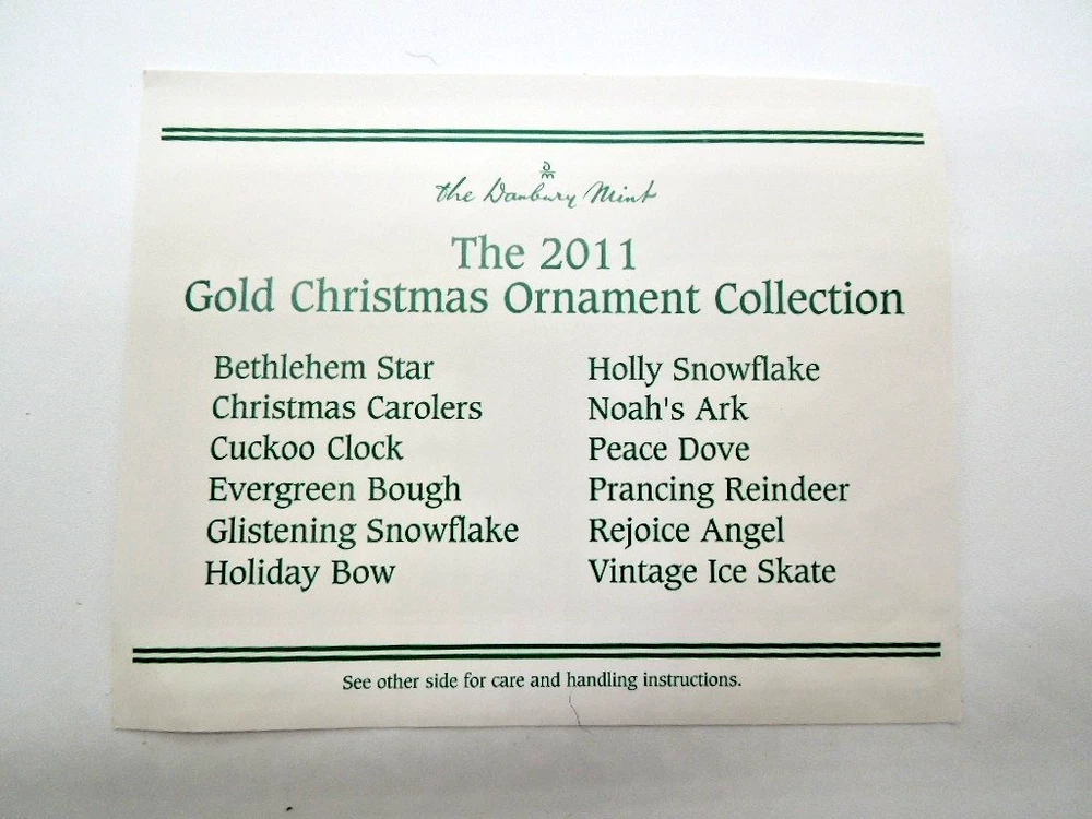 Retired 2011 23 kt gold electroplated and fine filigree Christmas Ornament by Danbury Mint in original box. No signs of use.
