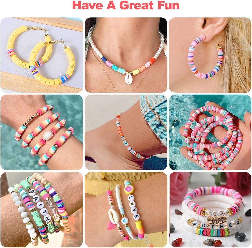 Bracelet Making Kit: Contains 21600 pcs flat polymer clay beads in 144 colors and 1400 pcs charms kit(including 160 pcs each of black, gold, and colored letter beads, evil eyes beads, fruit beads, gold spacer beads, lobster clasp, etc.), 2 rolls of 10 meters stretchy strings,1 scissors, 1 plastic tweezers, 5 pairs of earrings, beads for jewelry making can meet your various DIY needs Premium Material: These clay beads for bracelets are handmade from premium polymer clay; The diameter of each bead is 6mm, the aperture is 2mm, and the thickness is 1mm; The bead bracelet made from them is safe, lightweight, comfortable to wear, and waterproof; These properties make the bracelet easy to clean after events such as parties and concerts Rich Color and Various Beads: The bracelet making kit comes in 144 colors, including not only common colors and kaleidoscope beads but also a box of other beads in a variety of formats; You can use different colors and different types of beads to create your favorite style Enhance Our Relationship: Why not try designing DIY crafts with your kids on a leisurely afternoon? Parents and children can make their jewelry, such as bracelets, necklaces, earrings, anklets, key rings, crafts, etc; Instead of letting your kids spend time with electronics, you can enjoy a creative and cute afternoon, strengthening your bonds Perfect Gifts for Teen Girls: When you are going to a party that may have many children attending, this will be a great gift; The handmade bracelet you make can be an excellent gift for birthdays, Christmas, Thanksgiving, and other occasions Quality Promise: Customer complete satisfaction is very important to us; If you find any problem with our beads, please feel free to contact us; We promise to give you a satisfactory solution within 24 hours; Thank you for supporting our brand Redtwo Product Description The video showcases the product in use. The video guides you through product setup. The video compares multiple products. The video shows the product being unpacked. Create beautiful clay bead bracelets with your child! Step away from screens to enjoy hands-on activities that may help improve skills and color perception while strengthening your parent-child bond. Experience a fun and harmonious family atmosphere together. VARIOUS STYLE DIY CRAFTS Are you still worried about how to make earrings? This video will teach you how to make earrings Earring kit include earring hook and earring ring. Put the clay beads through the earring ring, and then assemble the earring hook and earring ring together. You can try to use different colors of clay beads to make different styles of earrings. I hope this video is helpful to you, thank you! The video showcases the product in use. The video guides you through product setup. The video compares multiple products. The video shows the product being unpacked. The video showcases the product in use. The video guides you through product setup. The video compares multiple products. The video shows the product being unpacked. Are you still worried about knotting? This video will teach you two ways to tie knots Method 1: Knot directly,You don't need to prepare any accessories Method 2: Knot with clamshell beads,Need to prepare 2 clamshell beads,2 jump ring and 1 lobster clasp Please watch the video for detailed tutorial,I hope this video is helpful to you, thank you! BEST TEEN GIRL GIFTS! Imagine Her Reaction as she opens her pretty clay bead box to see a beautiful Jewelry bracelet kit for the first time. It’s a Precious Moment that you’ll want to capture! ALUABLE COLLECTION AND GIFTS! An ideal gift for girls, teens, and all crafts makers. Lovely gifts for Christmas, Thanksgiving Day, birthday, etc. Let’s have a great crafts party! Compare with similar items Add to Cart Add to Cart Add to Cart Add to Cart Add to Cart Add to Cart Add to Cart Customer Reviews 4.7 out of 5 stars 569 4.7 out of 5 stars 569 4.7 out of 5 stars 569 4.6 out of 5 stars 10,738 4.6 out of 5 stars 5,436 4.9 out of 5 stars 77 4.6 out of 5 stars 10,738 Price $19.99 $ 19 . 99 $24.99 $ 24 . 99 $21.99 $ 21 . 99 $21.99 $ 21 . 99 $9.99 $ 9 . 99 $4.99 $ 4 . 99 $6.99 $ 6 . 99 Color 144 Color 192 Color 168 Color 64 Color 24 Color 24 Color 18 Color Quantity 23000 Pcs 28000 Pcs 26000 Pcs 18000 Pcs 7200 Pcs 6800 Pcs 5100 Pcs Bead Organizer 7 box 9 box 8 box 4 box 2 box 1 box 1 box Complete Accessories ✔ ✔ ✔ ✔ ✔ ✔ ✔ With Letter Beads ✔ ✔ ✔ ✔ ✔ ✔ ✔