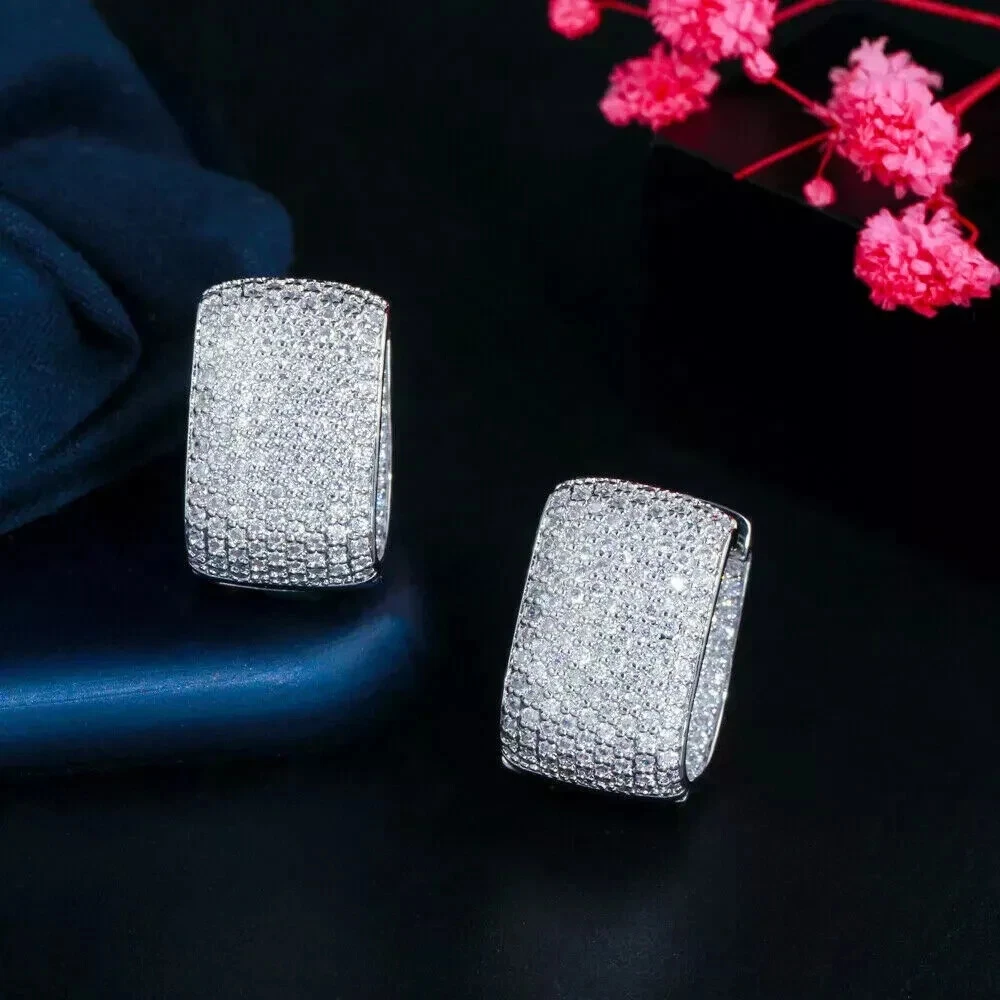 2.30CT Round Cut Moissanite Pave Set Bold Huggie Earrings 14K White Gold Plated Customization: Want to add your personal touch to this piece? Contact us and we will create one just for you. Most customization requests include: 1) Ring Resizing 2) Redesign 3) Metal Change (Silver/10K Gold / 14K Gold /18K Gold) 4) Metal Color Change (White/Yellow/Rose/Black) 5) Color Stones (White Topaz, Pink Sapphire, etc) 6) Engraving (Name or any message - no of characters subject to size of jewelry) 7) Anything under the sun that catches your fancy, we will give it a try :) Payment: We accept payment via PayPal only. You can also pay using your credit card, via paypal, by using paypal as a guest. Payment is required within 3 days of the sale of an item. Shipping: International shipments are usually delivered within 2 to 6 weeks, depending on the time taken to clear customs. We are not responsible for any delays due to customs. Please note that all countries charge a duty on imported goods. A customs clearing charge is also imposed in many countries. We are not responsible for the amount of duty or any other related charges. Terms & Sale: We want to ensure that you are completely satisfied with your purchase. If not, then please let us know before leaving any feedback and allow us to work with you to completely resolve any issues that you might be facing. You can return the item for a full refund LESS shipping, within 14 days of item(s) receipt date. There is no restocking fee. 100% Satisfaction Guaranteed. All returns must reach us within 14 days after the item was delivered to you the item must be in the original condition and with the original tags attached. Contact Us: You can contact us by clicking on 'ask seller a question'