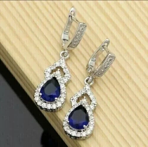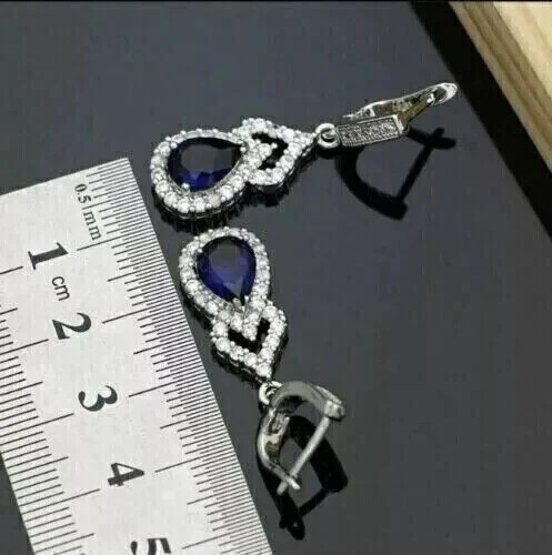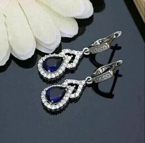 Personalize: Yes Antique: No Occasion: Anniversary, Birthday, Christening, Christmas, Confirmation/Communion, Engagement, Graduation, Mother's Day, Valentine's Day, Wedding Country of Origin: Unknown Type: Earrings Seller Warranty: Yes Era: Undated Customized: Yes MPN: NA Cut Grade: Excellent Main Stone Shape: Pear Color: White Handmade: Yes Ear Area: Lobe Metal Purity: 925 Vintage: No UPC: Does Not Apply Item Length: ___ Main Stone Color: Blue Theme: Beauty Wholesale: Yes Metal: Silver Gemstone Clarity Grade: Slightly Included Style: Dangle/Drop Main Stone Treatment: Not Enhanced Shape: Teardrop gtin13: Does Not Apply Signed: No Main Stone: Simulated Blue Sapphire Closure: Clip-On Base Metal: White Gold Plated Country/Region of Manufacture: India Features: NA Number of Gemstones: 02 Brand: excellentstore Secondary Stone: Simulated Diamond Material: Stone, Metal Setting Style: Prong Main Stone Creation: Simulated
