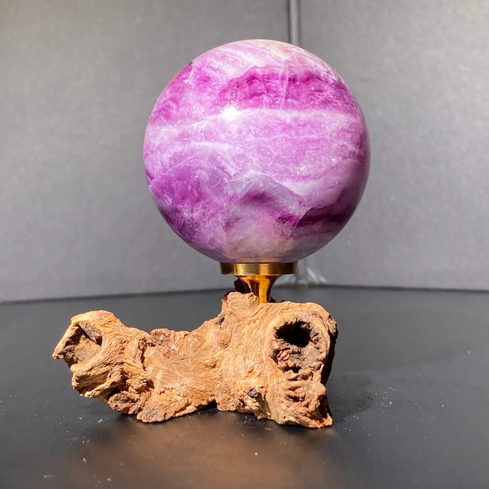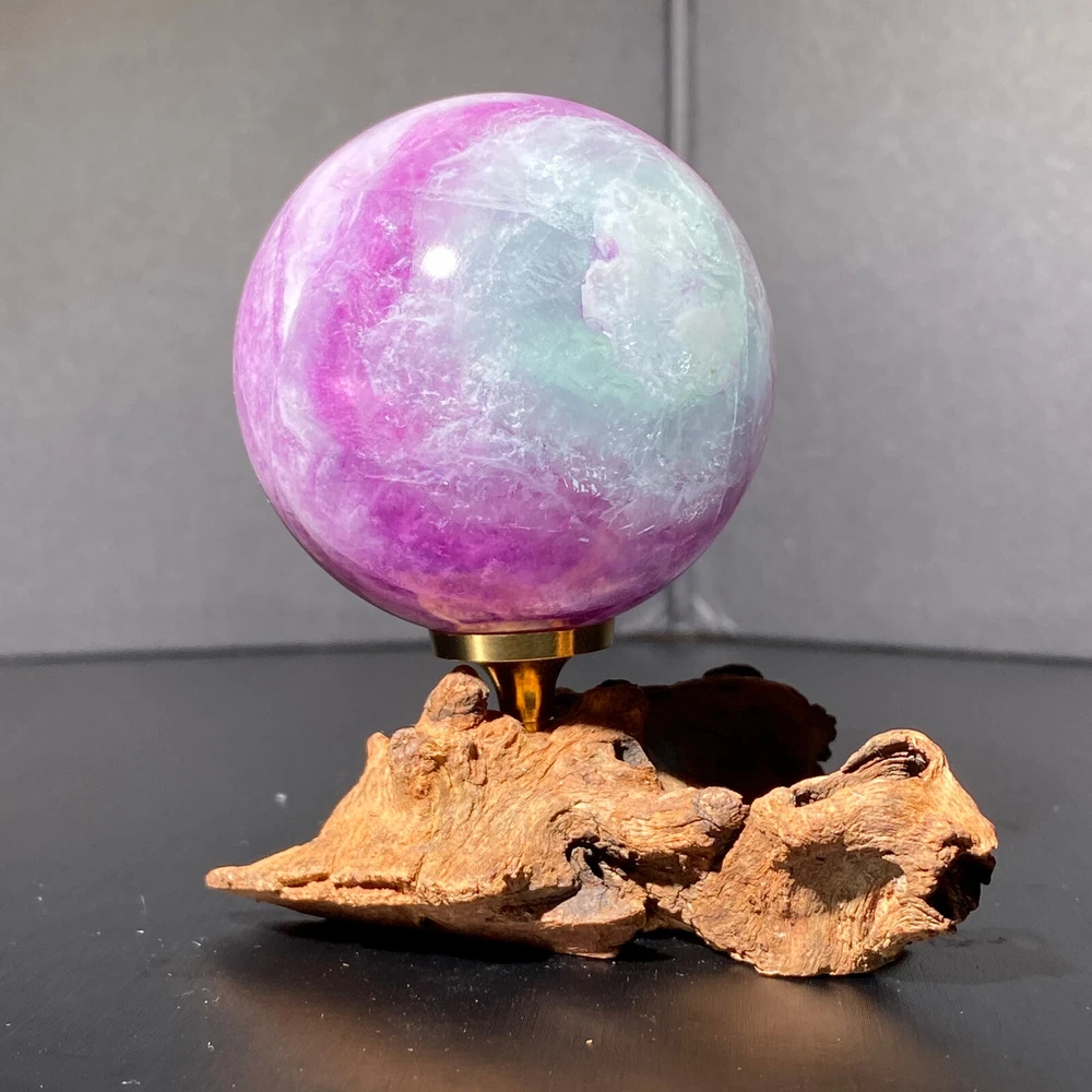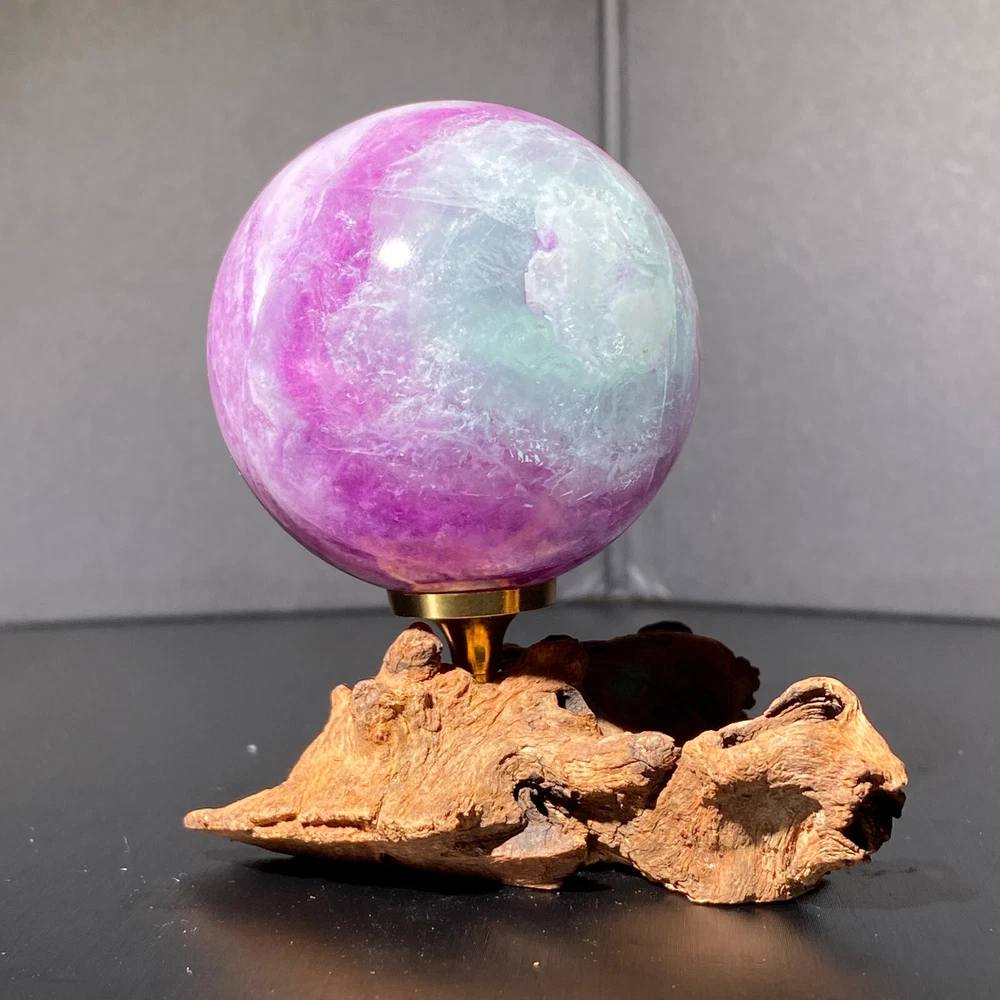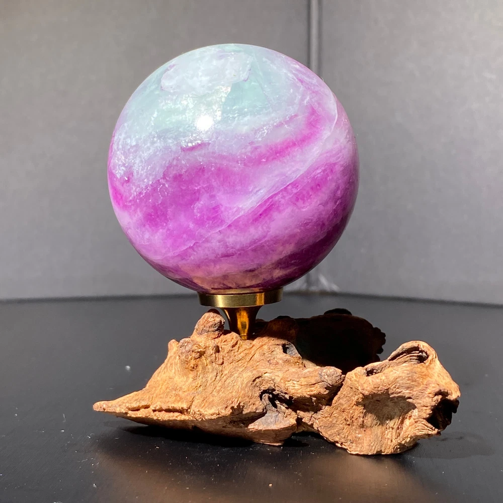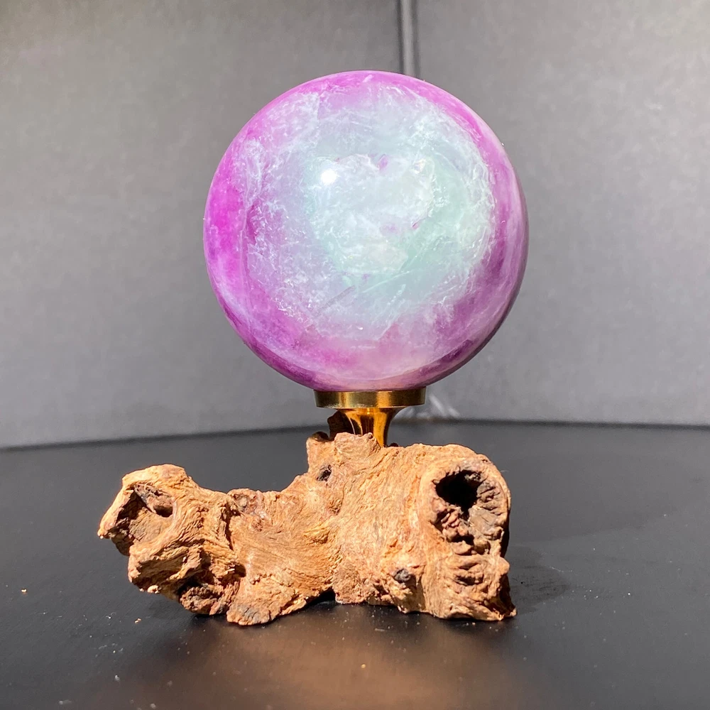 234g Natural Fluorite Ball Colorful Crystal Gemstone for Healing with Display Stand