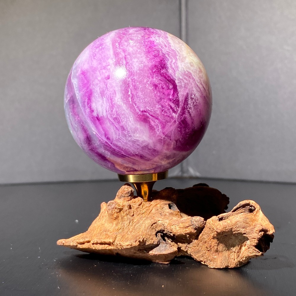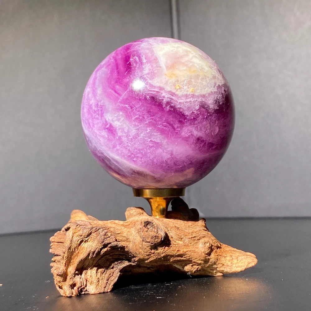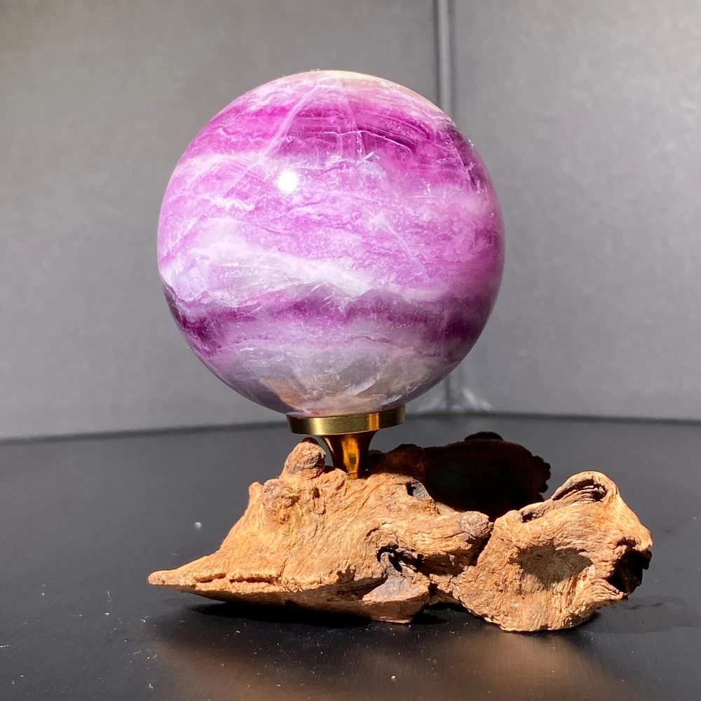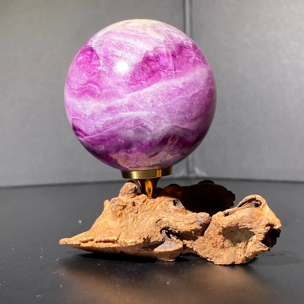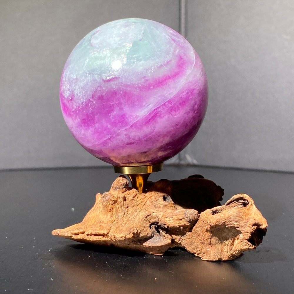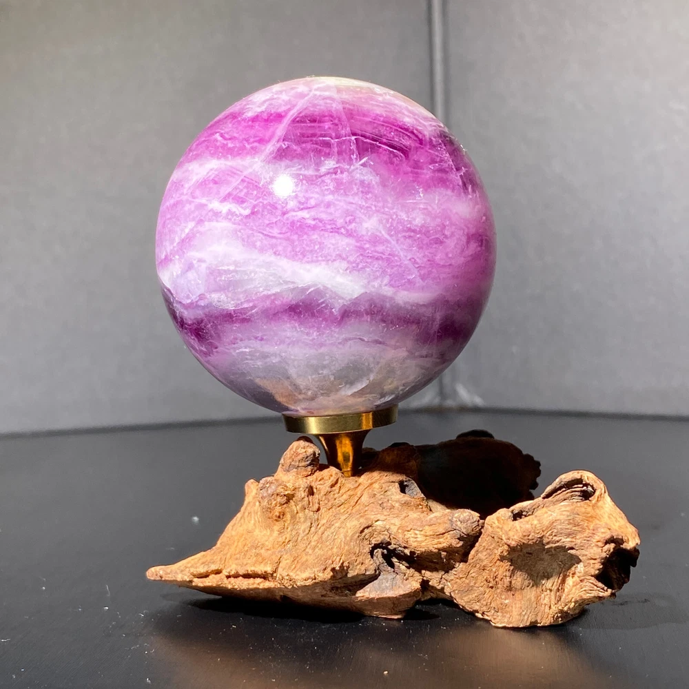 234g Natural Fluorite Ball Colorful Crystal Gemstone for Healing with Display Stand
