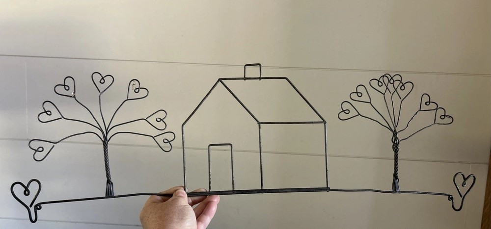This 23.5" Wire Art Wall Decor features a black farmhouse style design with hearts and trees theme. Made of wire material, it is perfect for adding a decorative touch to any room. The wall-mounted piece can hold a dowel rod and stands at a height of 7 inches. Add a touch of artistry to your home with this unique and stylish wire art wall decor.