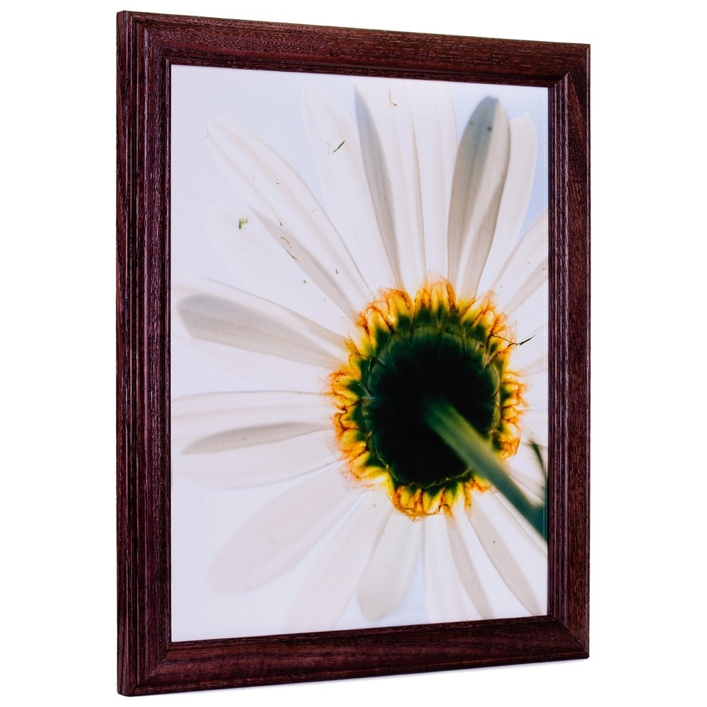 Traditional style; semi-gloss cherry read stain finish; visible wooden grain **color and grain pattern may vary slightly with each frame** Frame includes: glass, rigid black backing and pre-attached stamped hanging hardware Frame holds a 4 x 10" photo/print/poster (viewable area reduced by .25On each side due to frame lip) Frame molding is 0.75 inches wider; solid ash wooden construction Frame is designed for wall hanging only (hanging hardware allows for portrait or landscape orientation)