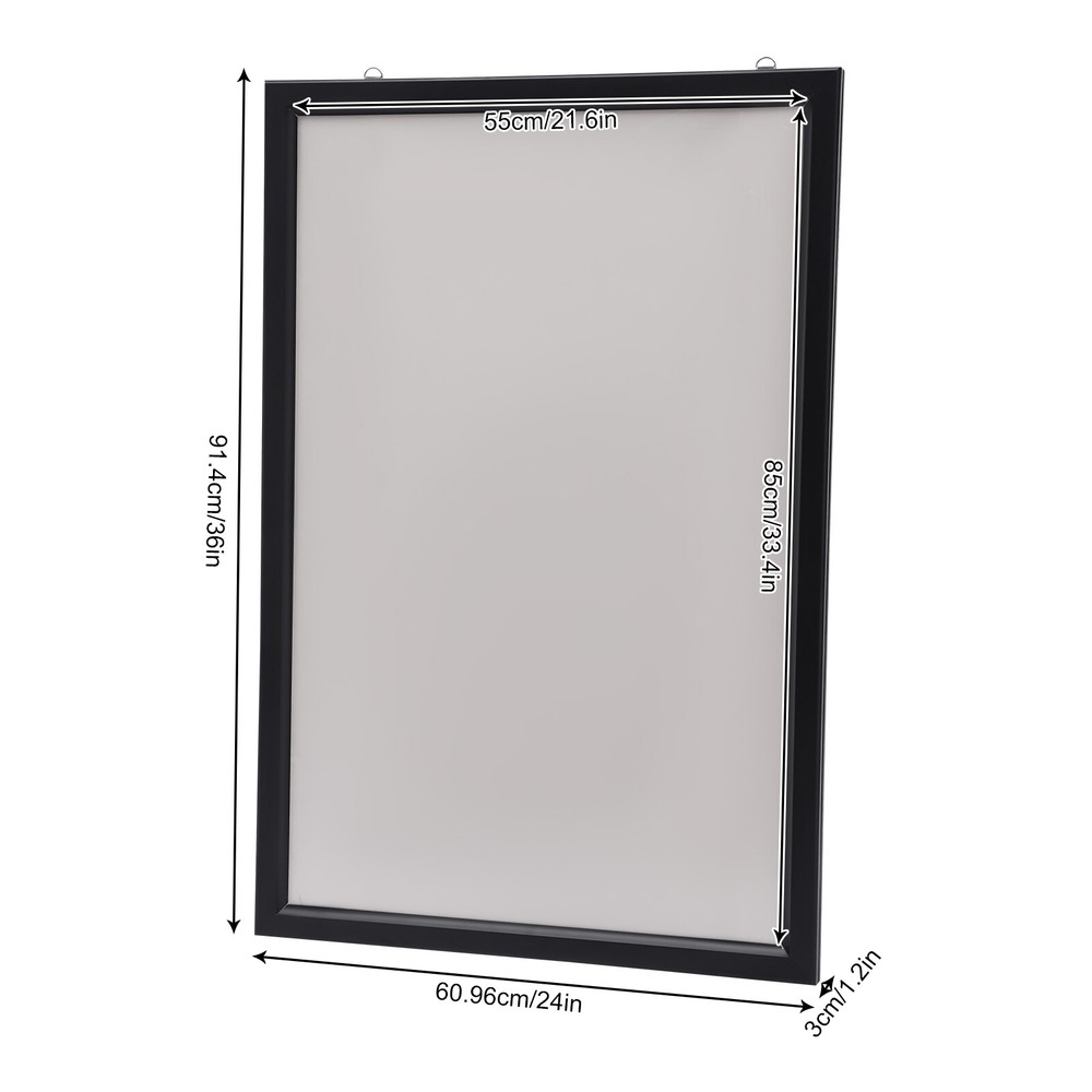 23.6×35.8in LED Backlit Movie Poster Art Picture Frame Light Box Wall Mount Application It is suitable for exhibitions, advertisements, signs, and decorations in cinemas, event promotions, retail stores, restaurants, art displays, trade shows, banks, hospitals, libraries, counters, offices, companies, menu boards, jewelry stores, hotels, studios, etc. Key Features Soft Light: This product uses a uniform nano light guide plate and side light guide technology, making the light soft and not harsh to protect your eyes. The LED light has high brightness, fast heat dissipation, which can provide stable performance, extend the service life of the product, and save electricity. Multiple Uses: It can display posters for cinemas, shopping malls, restaurants, etc. to attract customers' attention or be used as a signs board to guide the way for passersby. You can also put it at home for decoration or use it as a display board for art galleries and museums. Narrow Edge Design: The frame is spliced at 45° and has a width of 1.5 inch, which can maximize the visibility of the visual area (23.6×35.8in) and play a promotional and display role. Thoughtful Design: The built-in stainless steel shrapnel and the front-opening frame design allow you to gently flip out to open the panel, making it easy to replace the poster Details Study Hooks: With two sturdy hooks on the back, you can easily hang this product on the wall. Strong and Durable: The high-quality acrylic panel is dustproof, moisture-proof, and can resist impact and deformation. Meanwhile, the aluminum alloy frame adopts a sandblasting process, baking paint process, and an oxidation process, so it can resist wear, corrosion, rust, and heat. Protective Packaging: The four corners of the product are wrapped with sponges to resist compression and falls, which can prevent product damage in transit. Ready to Use: This product doesn't need assembly and you can use it directly after plugging it in. Installation 1.Place the poster frame on the wall, and mark the location of the nail hole with a pen. 2.Drill 2/4 holes at the marked position and punch nails(not included). 3.Remove the rear protective film and hang the frame on the corresponding nail. 4.Remove the front protective film. Specification Color: Silve Material: Acrylic, Aluminium Alloy Shape: Rectangular Style: Modern Plug Voltage: 110V Power: 20W Power Type: Plug-in Mounting Type: Wall Mount Lumen: 2000lux CRI: >85 Color Temperatur: 9000-10000K Service Time: About 80000h Efficiency: E Plug: American Standard Light Source: LED (Included) Net Weight: 3.5kg/7.7lbs Gross Weight: 4kg/8.8lbs Surface Treatment: Sandblasting Process, Baking Paint Process, Oxidation Process, Cutting Process Product Size: 60*3*91cm/23.6*1.2*35.8inch Package Size: 98*63*4cm/38*24*1inch Package Included 1* LED Poster Frame Notes 1.The product has protective films on both sides, please tear them off before use. 2.Please allow the slight color difference caused by the shooting light and 1-3cm error due to manual measurement, and make sure you do not mind before ordering. Note:the suitable size of poster is 54*85cm/about 21.25*33.46". Payment Delivery details Terms of sales About us Contact us Payment We accept ebay payment 。 Fees such as import duties, taxes are not included in the item price or shipping costs. These charges are the buyer's responsibility. Delivery details Shipping: 2-9 working days to: USA Terms of sales We maintain high standards of excellence and strive for hundred percent customer satisfaction. Feedback is very important to us. We hope that you contact us immediately before you give neutral or negative feedback, so that we can address your concerns. It is impossible to address issues if we do not know about them! About us Your satis faction is our ultimate goal. We work hard to earn your trust and future business. Our certified technicians have tested each item before shipping. The unit comes with 1 year limited warranty on all manufacturing defects. a) If you receive a defective item, you may return it or ask for a discount. Please contact us within 14 days after you receive the package. b) What you returned must be intact and in its original packaging as re? u. Customer is responsible for shipping costs of the returned item. c) We will cover the cost of shipping back t with the shipping rate indicated in the registration page. We will send you a new unit or refund the full payment you paid. Thank you. Contact us Business Hour Business Hour: Monday To Friday: 8:30 AM to 5:00 PM (Beijing China time) Due to time zones, our reply to your questions may not be immediately. But within above working time, we will reply your email within 24 hours. If it's non-workdays, please kindly be patient and wait till Monday. Please contact us with ebay message. Please feel free to contact us if you have any questions. Monday To Friday: 8:30 AM to 5:00 PM (Beijing China time) Due to time zones, our reply to your questions may not be immediately. But within above working time, we will reply your email within 24 hours. If it's non-workdays, please kindly be patient and wait till Monday. Please contact us with ebay message. Please feel free to contact us if you have any questions. On Feb 13, 2025 at 18:13:44 PST, seller added the following information: