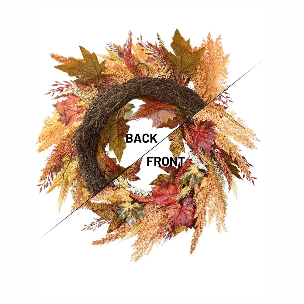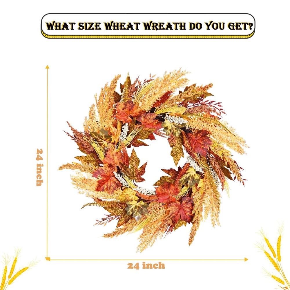 fall door wreath 24 inch Fall Wreath Wreaths for Front Door Farmhouse Wreath for Front Door Autumn Wreath for Thanksgiving Wall Window Home Decor Orange Wreath front door wreath farmhouse harvest wreath for front door 【High-quality Material】 Artificial fall wreath, handcrafted and more real. Uses environmentally friendly material, exquisite and durable. Simple elegant and comfortable color, vivid natural form, create an artistic romantic atmosphere. Light up your space with our energetic fall reef for door. 【Durable】 This wheat wreaths for front door have UV protection and helps prevent fading will look great for years to come. Silk leaves and wood-like shape base made it last long years. No hassles with needle clean-up or maintenance are required. A must-have thanksgiving wreaths for fall season outdoor. 【Size】 This thanksgiving decorations measure 24" in diameter, orange and brown design, symbolizing the year of the autumn harvest. The fall wreaths for front door outside is filled with beautiful artificial foliages and fake wheat spikes is the perfect harvest time decoration! Realistic leaves in various stages of fall color and berries complete the lush fall wreath look. 【Widely Use】 This fall door wreath can be used indoors or outdoors. Hang it on the front door, living room, fireplace, cabinets, walls, windows, shelves and other places you like. If it is outdoors, it is recommended to hang it on the covered porch to avoid direct sunlight and rain. 【Warm Tips】 For best longevity, keep out of direct sunlight and rain. If there are any problems with our products, please contact us at the first time, we will reply to you ASAP.