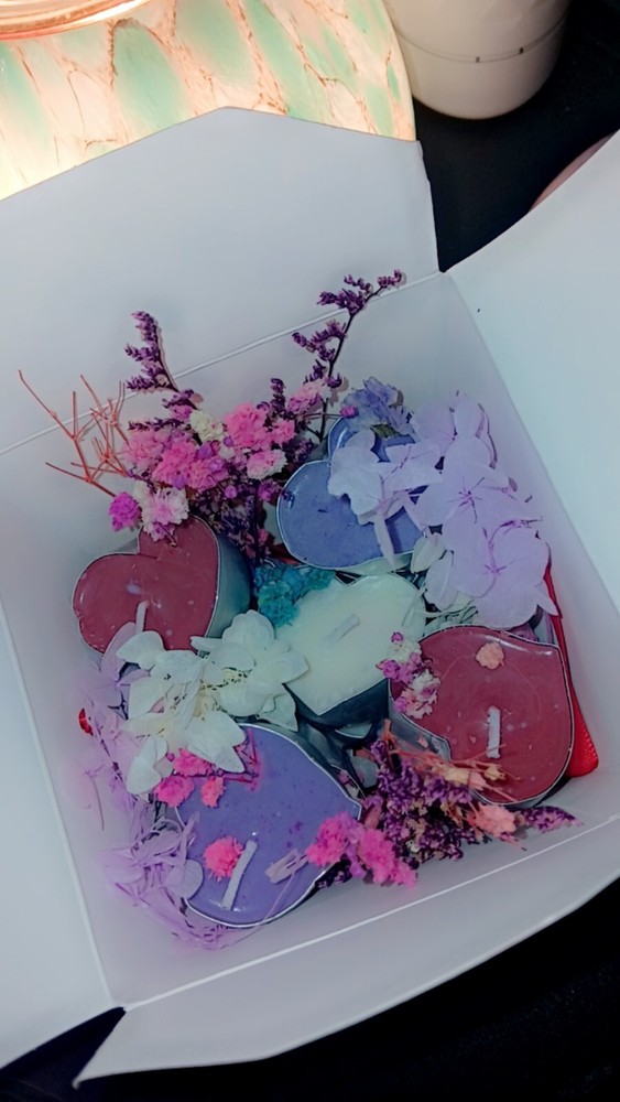 Style: Modern Item Weight: 1 oz Size: Small Customized: No Theme: Floral & Garden, Flowers, Nature, valentine's, valentine's day, Special Occasions, Holiday, Love & Hearts, Romantic, Royalty Model: scented tealight candles Brand: Unbranded Color: red,purple,white Item Width: 1.57 in Country/Region of Manufacture: United States Burning Time: 2.5 hrs Personalize: No Features: Decorative, Scented, Single Wick, tealight candles, floral embedded Number in Pack: 23 Type: Scented Candle Material: Soy Wax, Paraffin Wax Room: Bathroom, Bedroom, Dining Room, Entryway, Foyer, Guestroom, Indoor, Kitchen, Living Room, Lounge, Outdoor, Porch MPN: unknown Power Source: wick Item Height: 1 in Shape: Heart Candle Type: Tea Light Handmade: Yes Scent: sea breeze