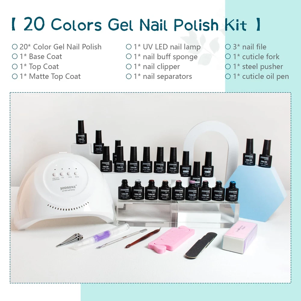 23-Piece Gel Nail Polish Kit with UV Light & Base Coat Essential Colors