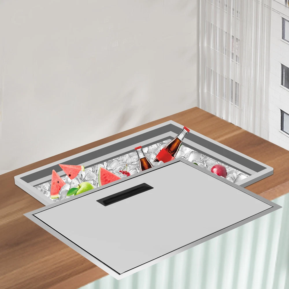 Key Features High-quality Material: It is made of food-grade 304 stainless steel, which is not only safe and harmless for storing edible ice or food directly but also very solid, rust-proof, and not easily deformed to ensure long service life. Excellent Ice Retention: The double-walled design and built-in thickened foam insulation effectively prevent cold air from escaping from the inside and keep your ice solidified, so it can keep your drinks cool for a long time. Easy to Clean: The smooth stainless steel surface does not easily hide dirt, making it easy to clean. You can directly rinse it with water and dry it to get it as clean as a new one. Large Capacity: With a capacity of 50L/52.8Qt 23"X17" Drop In Ice Chest 304 Stainless Steel Beer Beverage Cooler BBQ Island Description Do you want to achieve ice drink freedom at your barbecue time or outdoor party? Then this drop-in ice chest will be the ideal choice for you! Its unique double wall design, built-in foam layer, and lid all provide excellent insulation to keep the ice frozen. It will provide you with cool and comfortable iced drinks to make your party more exciting and active! Key Features High-quality Material: It is made of food-grade 304 stainless steel, which is not only safe and harmless for storing edible ice or food directly but also very solid, rust-proof, and not easily deformed to ensure long service life. Excellent Ice Retention: The double-walled design and built-in thickened foam insulation effectively prevent cold air from escaping from the inside and keep your ice solidified, so it can keep your drinks cool for a long time. Easy to Clean: The smooth stainless steel surface does not easily hide dirt, making it easy to clean. You can directly rinse it with water and dry it to get it as clean as a new one. Large Capacity: With a capacity of 50L/52.8Qt, this drop-in ice chest easily stores and cools large quantities of ice, drinks, or frozen foods for the whole family or commercial needs. Outdoor Party Companion: This all-in-one ice chest allows you to take it to any outdoor scene, which will bring cold drinks to your party without the need for an electric refrigerator, making it a great choice for outdoor lineups. Open Design: You can remove the lid to convert it into an open ice chest, which is convenient for customers to take and choose their favorite drink. Space Saving: It adopts a drop-in design, making full use of the space in the bottom cabinet without taking up too much counter space, which will give you a clean and tidy countertop. Customer Service: We aim to provide quality products and services. If you have any problems, please feel free to contact us. We will reply and solve the problem for you as soon as possible. Details Stainless Steel Lid: It is equipped with a stainless steel lid for better insulation work. At the same time, it can ensure that the internal ice or drinks are kept away from dust and other contaminants. Comfortable Handle: The lid is equipped with a recessed plastic handle with a smooth and comfortable surface that does not hurt your hands, making it easy for you to open or close the lid. Application It is widely used in dinner parties, parties, bars, kitchens, offices, etc. for keeping wine, beer, whiskey, beer, cocktails, vodka, juice, and frozen food fresh. Specifications Material: 304 Stainless Steel + Plastic + Foam Installation: Drop-in, Freestanding Shape: Rectangle Color: Silver Thickness of Foam Insulation Layer: 2cm/0.78in Capacity: 50L/52.8Qt Packing Size: 61*45*32.5cm/24*17.71*12.79in Product Dimension: 58.9*43.6*30.7cm/23*17*12 in Gross Weight: 5.5kg/12.12lbs Net Weight: 5kg/11lbs Package Included 1* Drop-in Ice Chest 1* Lid Notes Please allow the slight color difference caused by the shooting light and 1-3cm error due to manual measurement, and make sure you do not mind before you order. Payment Delivery details Terms of sales About us Contact us Payment We accept ebay payment 。 Fees such as import duties, taxes are not included in the item price or shipping costs. These charges are the buyer's responsibility. Delivery details Shipping: 2-9 working days to: USA Terms of sales We maintain high standards of excellence and strive for hundred percent customer satisfaction. Feedback is very important to us. We hope that you contact us immediately before you give neutral or negative feedback, so that we can address your concerns. It is impossible to address issues if we do not know about them! About us Your satis faction is our ultimate goal. We work hard to earn your trust and future business. Our certified technicians have tested each item before shipping. The unit comes with 1 year limited warranty on all manufacturing defects. a) If you receive a defective item, you may return it or ask for a discount. Please contact us within 14 days after you receive the package. b) What you returned must be intact and in its original packaging as re? u. Customer is responsible for shipping costs of the returned item. c) We will cover the cost of shipping back t with the shipping rate indicated in the registration page. We will send you a new unit or refund the full payment you paid. Thank you. Contact us Business Hour Business Hour: Monday To Friday: 8:30 AM to 5:00 PM (Beijing China time) Due to time zones, our reply to your questions may not be immediately. But within above working time, we will reply your email within 24 hours. If it's non-workdays, please kindly be patient and wait till Monday. Please contact us with ebay message. Please feel free to contact us if you have any questions. Monday To Friday: 8:30 AM to 5:00 PM (Beijing China time) Due to time zones, our reply to your questions may not be immediately. But within above working time, we will reply your email within 24 hours. If it's non-workdays, please kindly be patient and wait till Monday. Please contact us with ebay message. Please feel free to contact us if you have any questions. Shipping notice Can not ship to Puert