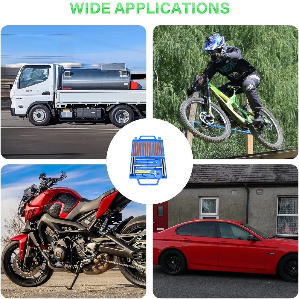 23pc Tire Repair Kit DIY Flat Tire Repair Car Truck Motorcycle Home Plug Fix 23pc Tire Repair Kit DIY Flat Tire Repair Car Truck Motorcycle Home Plug Fix Features: 🔨 SUPERIOR QUALITY'S MATERIALS : Better than any other brand, our T-handle is made of the solidest A3 steel material which is stronger than others and is hard to break. The Tire Repair Strip is used the best rubber which is durable and not easy to age and harden. 🔨 PROFESSIONAL AND ERGONOMIC DESIGN : This patch kit is strictly complied with the top production standards. Sturdy T handle is made of heavy steel, provides greater turning power and feels great in your hand. 🔨 MULTIPLE USES : This kit has extensive applicability design, which can repair more types of tires for up to 3CM punctures, like glass, piton, rock punctures of auto, motorcycles, tractors, lawnmowers, dirt bikes, trailers, jeeps, or trucks, etc. You can use it in a big truck comfortably. 🔨 EASY TO USE : Our tire plug kits have everything you need to make repair easily. This kit with T-handle and spiral probe tool, so you can pierce into easily no matter what tires you repair. The portable storage case takes up very little space. 🔨 QUICK ACTION : We care about every customer's sense of use. It is our responsibility to ensure product quality. If you have any questions about the repair kit, please contact us. 🔨 SATISFACTION GUARANTEE : If you have any questions, please feel free to contact us for online service and we will solve your problem within 24 hours. T-handle T-handle is made of the solidest A3 steel material which is stronger than others. It is not easy to break. The kit also equips the Tire Pressure Gauges with the Black Rubber Valve Stem which can measure and maintain the air pressure level of the tire after tire repairing work to ensure the safety of driving. SAVE MONEY Doing it yourself is soo cost effective No need to take it to a shop to get it patched up OPERATION METHOD OF TIRE REPAIR STEP ONE Pull out the nall STEP TWO Use threaded needles to find out the direction Remove sundries STEP THREE Put in the adhesive strip STEP FOUR Insert the adhesive strip and rotate 360 degrees Pull out the needle for the remaining centimetre STEP FIVE Cut off the extra rubber strips. STEP SIX Complete the tire repair. Specification: Item Weight:1.5lb Product Dimensions:6.7" x 5.75" x 1" Material: 40CR Q235 Color: Blue 23 piece set Package Included: 15 X Tire patching strips 1 X Reaming drill 1 X Fork drills 1 X Reaming drills 1 X Fork drill bits 1 X Utility knife 1 X Hex wrench 1 X Valve core tools Payment Delivery details Terms of sales About us Contact us Payment 1.We accept PayPal/credit/Gpay 2.All payments must be received within 10 days after auction won 3.Non-pay bidder will get a negative feedback and an unpaid alert from eBay 4.E-checks via Paypal will be hold until it is cleared Delivery details Most Items Free Shipping within the 48 States. We ship within the United States only. The term EXCLUDES the states of Alaska, Hawaii and all off-shore U.S. territories and possessions such as Puerto Rico, Guam and Virgin Islands. We do not ship to APO and FPO . Delivery Time: 4-7 business days (Varies by Destination) Shipping Carriers are responsible on the delivery time. If you have any questions or problems with delivery, please contact carrier directly Standard Order Processing time: All items will ship within 24 hours (Monday - Friday). Payment cleared/received on Friday will be shipped on the next business days (Monday or Tuesday) We are not responsible for carrier transit time. This information is provided by the carrier and excludes weekends and holidays. Note that transit times may vary, particularly during peak periods or in climate weather conditions, and that delivery times frames will need to be extended for any processing time frames in excess of 1-2 business days. Terms of sales We fully guarantee Customers benefit within 30 business days if item DOA (damage on arrival), and please contact us within 30 days from the delivery date to exchange or refund. No need click "Return", please just contact us via Ebay Message. If you insist on returning the item, please choose the reason "nolonger need it' for returning processing. You will get the replacement or refund through the communication between us. About us We strive for 100% Customer Satisfaction and high quanlity products. If you have any questions or any problems on your purchase, please feel free to contact us via Ebay Message Contact us Via eBay message system , you will get our response within 24 working hours during business days from Monday to Friday. We apologize for the late reply during the holidays or weekends. Please send all correspondence through the ebay messaging system. All Technique questions, must be asked via ebay message. Emails will be applied during business hours: 9AM to 6PM Pacific Time. Monday to Friday only (excluding Holidays). After hours emails will be replied on the next business day. Brand Unbranded Type Tire Repair Kit Placement on Vehicle As Picture Manufacturer Part Number Does not apply OE/OEM Part Number Does not apply Material 40CR Q235 Universal Fitment Yes Country/Region of Manufacture Unknown