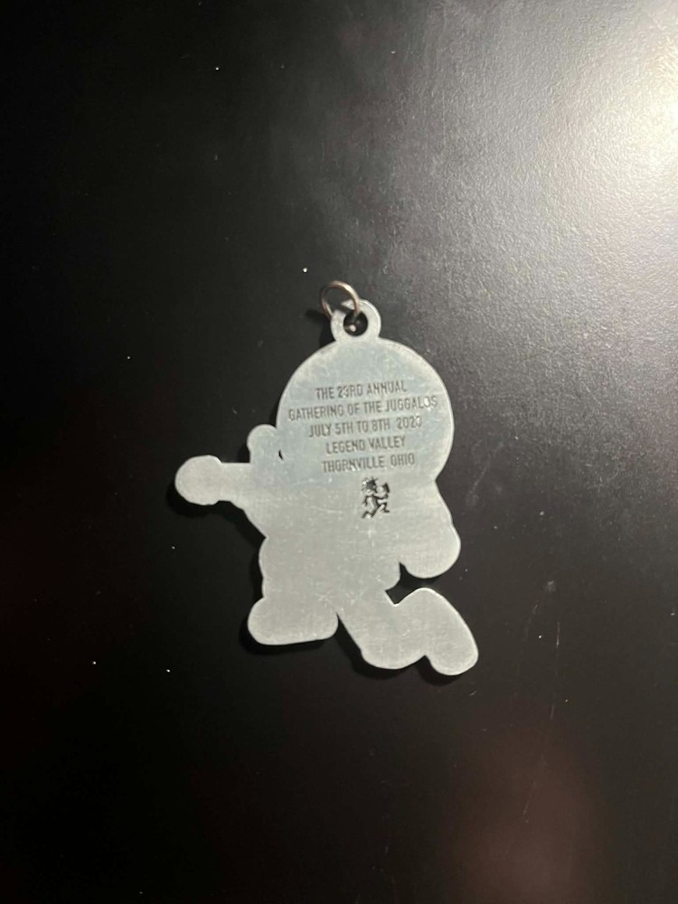 ICP – 23rd Annual Gathering of the Juggalos (GOTJ) Medallion Up for sale is an official Insane Clown Posse (ICP) medallion from the 23rd Annual Gathering of the Juggalos (GOTJ) . Released exclusively at the Gathering , this medallion represents a unique chapter in ICP and Juggalo history. Event-only medallions are produced in limited quantities, making them sought-after pieces for collectors and longtime fans alike. Details: Official ICP / Psychopathic Records merchandise Event: 23rd Annual Gathering of the Juggalos Material: Metal medallion Condition: Pre-owned (please see photos for exact condition) Great for display, collecting, or memorabilia storage A solid addition to any Juggalo collection , whether you attended this Gathering or are completing a full GOTJ medallion set. Ships fast and securely. Message me anytime with questions.