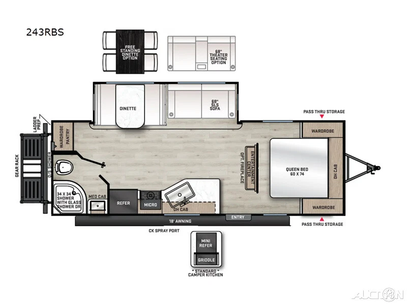 Vehicle Information Year: 2024 Make: Coachmen Model: Catalina Legacy Edition Condition: New Contact Day Bros RV Sales 3054 South Laurel Rd London Kentucky 40744 View Map Ask for: Josh McKay Contact:  Contact Us Office: (866) 546-9579 Hours Mon, Tues, Thurs, Fri: 09:00 AM-06:00 PM EST Wednesday: 09:00 AM-05:00 PM EST Saturday: 09:00 AM-04:30 PM EST Sunday: Closed Why Buy From Day Bros In Kentucky **Click "See full description" in Item Description for more specs and photos!** Come visit us in scenic Laurel County, KY! Our location in London, KY is just five miles off Exit 38 on I-75 and places us in the middle of some of the most beautiful scenery in the country. We're just north of Cumberland Fall State Resort Park, a vacation destination that's home to the "Niagara of the South." Cumberland Falls is one of the largest waterfalls in North America and one of the precious few places in the world where you can see a moonbow. People come from all across America to take in the beauty of this local treasure, and with its RV park you can make a long weekend of your purchase from Day Bros. It's also home to miles of hiking trails, making it the perfect RV destination. Come on by and plan to stay for a few days after you drive your new purchase off the lot! If anything goes wrong, we're right here to help make sure you make that long drive home with a reliable coach. A little closer but no less beautiful is Levi Jackson State Park, which is just up the road from our dealership. A historic park encompassing nearly 900 acres, you can visit parts of the Wilderness Road, where early settlers traveled to reach Kentucky. You can retrace the steps of Wilderness Road with two hiking trails totaling 8.5 miles. Levi Jackson is also home to an RV park for that long weekend--why not celebrate the purchase of your new coach with a mini vacation! Levi Jackson also boasts the Mountain Life Museum, which brings visitors into a pioneer settlement for some historic fun every Friday and Saturday Memorial Day through Halloween. Don't hesitate to ask us where to find good food and good fun in the local towns while you're here. London and Corbin are experiencing an exciting downtown revival of great food and local shops, and if you give us a call you can schedule a visit during one of our famous events, such as the World Chicken Festival. We want your RV buying experience to be a fun as possible and our location means there's plenty to be had. To get started on your RV buying journey, call us at 1-866-546-9579 or visit our website at www.daybrosrvsales.com NOTE: Some of our RVs are located at our NEW location in Monticello, KY! See pictures for more info. Josh McKay (866) 546-9579 3054 South Laurel Rd London Kentucky 40744  Day Bros RV Is Located In Scenic London, KY  Credit Application  Directions to Dealer  Contact Us BBB Accredited Business London, KY Monticello, KY 24 Coachmen RV Catalina Legacy 243RBS Travel Trailer Towable Camper Slide Video  Apply Now Secure Credit Application Applying for a vehicle loan online is one of the quickest and easiest application methods. Our secure application is easy to complete, all you need are a few personal and employment details.  Credit Application  Directions to Dealer  Contact Us Options and Standard Features Basic Information Year: 2024 Make: Coachmen Model: Catalina Legacy Edition Trim: 243RBS Stock Number: 043749 VIN: 5ZT2CANB1RU043749 Condition: New Dry Weight: 5588 Type: Travel Trailer Sleeping Capacity: 4 Length (Feet): 28 Construction Body Material: Steel Sidewall Construction: Aluminum Dry Weight (kg): 2534.7 Dry Weight (lbs): 5588 Title: Clean Suspension / Braking / Wheels Spare Tire Location: Exterior Mounted Wheels Composition: Aluminum Rear Tire (Full Spec): 15-Inch Tires Rear Wheel Diameter: 15 Wheels Tires Spare Tire Spare Tire Cover Front Brake Type: Not Applicable Rear Brake Type: Electric Drum Drivetrain Number Of Axles: 2 Safety Smoke Detector Carbon Monoxide Detector Propane Alarm Emergency Exit(S) Number Of Emergency Exits: 1 Exterior Exterior Flood Lights Exterior Shower Retractable Roof Antenna Exterior Color: Grey Interior Interior Wood Finish Wallpaper Living Area Location: Center Interior Color: Tan Comfort Air Conditioning (Btus): 13,500 Heater Sofa Number Of Sofas: 1 Number Of Convertible / Sofa Beds: 2 Air Conditioning Type: Automatic Sofa Material: Vinyl Heater (Btus): 35000 Heater Type: Automatic Convenience Power Vent Fan Sky Light Roof Vents Leveling Jack Type: Front Manual / Rear Manual Leveling Jacks Included: Standard Entertainment Radio TV Antenna Prewiring Cable Prewiring Surround Sound Satellite Prewiring Number Of Radios: 1 Speaker Location(s): Interior / Exterior Slide-Outs & Awnings Slide Outs: 1 Awnings: 1 Slideouts Awning Power Retractable Slideout Power Retractable Awning Awning Length (ft): 15 Awning Length (m): 4.6 Cargo / Storage Pass-Thru Storage Utility Hookups Number Of Propane Tanks: 2 Water Heater Pump Power Mode: Electrical / Propane Water Heater Tank Capacity (g): 6 Water Heater Tank Capacity (l): 22.7 Total Propane Tank Capacity (gal): 9.4 Total Propane Tank Capacity (lbs): 40 Water Heater Tank Rear Bumper Drain Hose Carrier Propane Tank Cover Propane Tank(S) Water Heater Tank Bypass Holding Tanks Water Capacity (Gallons): 41-50 Fresh Water Holding Tank Gauge Gray Water Holding Tank Gauge Black Water Holding Tank Gauge Holding Tanks Number Of Fresh Water Holding Tanks: 1 Number Of Gray Water Holding Tanks: 1 Number Of Black Water Holding Tanks: 1 Total Black Water Tank Capacity (gal): 30 Total Black Water Tank Capacity (l): 113.6 Total Fresh Water Tank Capacity (gal): 44 Total Fresh Water Tank Capacity (l): 166.6 Total Gray Water Tank Capacity (gal): 40 Total Gray Water Tank Capacity (l): 121.1 Electrical / Generator Exterior Plugs Ground Fault Plugs Battery Air Conditioning Prewiring Heat Prewiring Battery Converter Amps: 45 Battery Power Converter Bedroom / Bath Bathroom Bathroom Flooring Typ