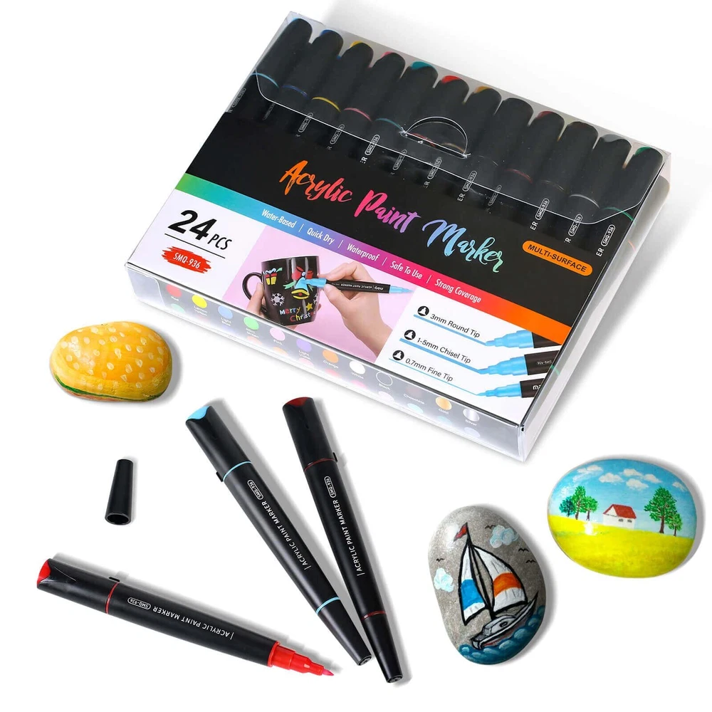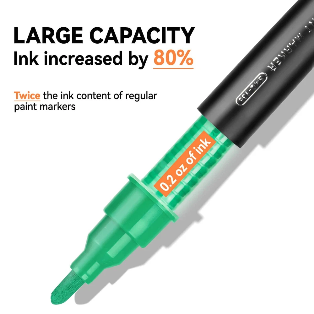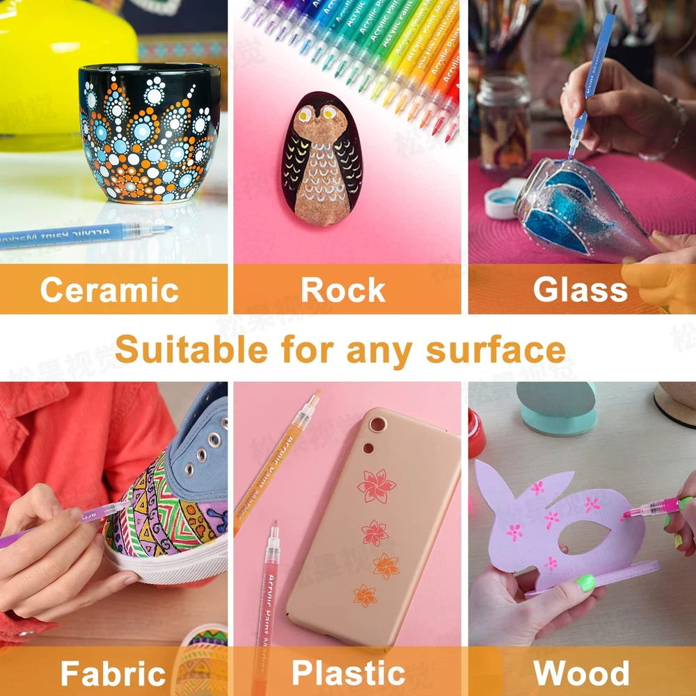 【Double Tipped】: fine point paint pens and acrylic paint pens bold tip. The size is 0.77mm fine tip, 3mm broad bullet point tip, 1-5mm chisel tip 【Features】: vibrant colors and long-lasting , quick dry, water-based and opaque ink, waterproof and permanent paint pens, never fade and never abrasion. 【Suitable Users】: paint pens perfect for artists, art students, children, teens and adults to use on arts and crafts projects .arts and crafts supplies 【Multi-Purpose】: Creating art projects on a variety of surfaces like Rock painting, ceramic and mug painting, glass and wine glass painting, wood, fabric, stone, metal, plastic, canvas, Christmas ornament, Halloween pumpkin painting, custom mugs, tire, porcelain, wood signs, wood ornaments, plastic surfaces, metal surfaces, automotive, car, graffiti 【Gifts】: Suitable for people who wanna give creative and unique gifts. Ideal choice for DIY holiday ornaments project supplies like Christmas crafts for kids or adults, Halloween pumpkin, Birthday, Children’s Day, Easter, Valentine's Day,Thanksgiving Day, Party, New Year's gift