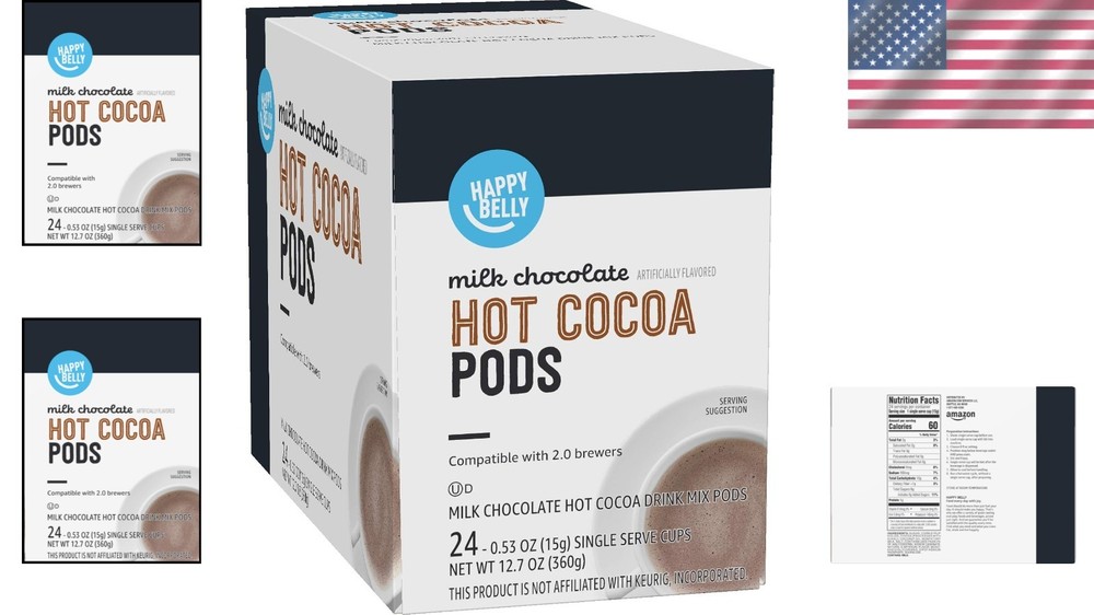 24 Count Milk Chocolate Hot Cocoa Pods – Perfectly Brewed Every Time ‹ › ‹ › ‹ › ‹ › ‹ › ‹ › ‹ › ‹ › ‹ › ‹ › 24 Count Milk Chocolate Hot Cocoa Pods Perfectly Brewed Every Time Indulge Your Senses: 24 Milk Chocolate flavored single serve hot cocoa cups for instant bliss. Delivering rich, creamy flavors with every sip—perfect for warming your heart on a chilly day. Compatible with both 1.0 and 2.0 K-Cup brewers for unmatched convenience. For best results, remember to shake the cup before brewing to enhance the sumptuous chocolate infusion. Contains milk, ensuring a luscious, velvety texture that's simply irresistible. Why Choose ? Previously a Solimo product, enjoy the same exceptional quality and size now under the brand. Our Milk Chocolate Flavored hot cocoa pods provide a delightful experience that takes your cocoa break to a whole new level. Whether it's a cozy night in or a gathering with friends, these single-serve pods ensure each cup is brewed to perfection—because you deserve the best. Make your pause in the day a moment of indulgence. Simply insert a pod, brew, and savor the rich flavor that warms the soul. Transform every sip into a chocolatey escape with . Shipping Free & Fast Shipping - We offer free shipping to most of the USA with a normal delivery time of 3-7 days. However, due to the current situation, additional delivery time (up to 3 weeks) may be required for some items. Alternative Carriers - We may use alternative carriers (e.g. USPS, FedEx, UPS, etc.) to ensure your package arrives safely and on time. Due to the use of multiple carriers, we are unable to provide a tracking number automatically. Handling Time - Orders are processed and shipped within 1-2 business days of receiving cleared payment. Shipping Restrictions - Shipping to Alaska, Hawaii, Puerto Rico, Guam, and other US territories may incur shipping charges or delivery restrictions. Please contact us before ordering, or your order can be refunded/cancelled. State Restrictions - There may be restrictions based on your state of purchase. For example, certain items may not be shipped to California due to state regulations. Contact for Tracking Updates - If you require tracking updates or have any concerns about the delivery of your order, please feel free to contact us, and we will be happy to assist you. Return 30-Day Hassle-Free Returns - We want you to be completely satisfied with your purchase. If you are not, you can return the item within 30 days of receiving it for a full refund or exchange. Easy Return Process - To start a return, simply contact us and we will provide you with a prepaid return shipping label and detailed instructions. Restocking Fee - There are no restocking fees for returns. However, the buyer is responsible for return shipping costs if the return is not due to a seller's error. Refund Processing Time - Refunds will be processed within 5 business days of receiving the returned item in its condition. Payment We accept all major credit cards, PayPal, and Apple Pay for your convenience. Your payment information is secure and encrypted to ensure a safe and seamless transaction. Please complete your payment within 3 days of purchase to avoid any delays in shipping. Feedback Your feedback is extremely important to us. We strive to provide the best products and customer service possible. If you are satisfied with your purchase, please take a moment to leave us a positive review. If you have any concerns or issues with your order, please contact us before leaving negative feedback. We are committed to resolving any problems and ensuring your satisfaction. Contact Us If you have any questions or concerns, please feel free to out to our customer support team. You can contact us through the eBay messaging system. We are available Monday to Friday, 9:00 am to 5:00 pm EST, and we will do our best to respond to your inquiry within 24 hours. Buy it now and enjoy a pleasant shopping experience! Expiration Date: 365 days Calories per 100 g/mL: Not Provided Course: Beverage Number in Pack: 24 Count Style: Pods Unit Quantity: 24 count Compatibility: Keurig,Keurig 1.0,Keurig 2.0 Flavor: Milk Chocolate Food Specifications: Kosher Allergens: Milk Product: Coffee Pod & Capsule Type: Hot Cocoa Calories per Serving: Not Provided Number of Servings: 24 Serving Size: 1 Pod Item Weight: 1.04 pounds