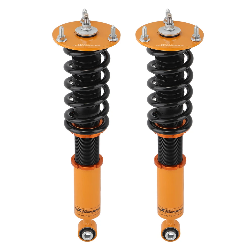 maXpeedingrods Canada Store Home About maXpeedingrods View Feedback Contact Us WHY CHOOSE US 24 Damping Levels Coilover For Lexus LS400 XF10 1990-1994 Toyota Celsior 90-94 Description Application For Lexus LS400 XF10 1990-1994 For Toyota Celsior 1990-1994 Specification Quantity: 2 piece front + 2 pieces rear Spring rate Front: 9 kg/mm (504 lbs/in) Spring rate Rear: 10 kg/mm (560 lbs/in) Damper: 24 ways adjustable damper Adjustable height: Yes Adjustable camber plate: No Color: Gold Feature - Adjustable ride height - Adjustable pre-load spring tension - 24 levels of adjustable damper -- This allows you the ability to perfectly dial in your coilovers system. For a nice comfortable driving, set damping to full soft. For more spirited driving, set it to 16 clicks. For occasional track days, set it to full stiff. - Pillow ball top mount -- this design helps combat noise while tuning. It also improves the steering feel and response - Most components are made from 6061 aluminum with T6 for increased hardness -- the advantages include excellent strength, and aluminum helps keep the weight down. - Hi Tensile performance spring - Under 600,000 times continuously test, the spring distortion is less than 0.04%. Plus, the special surface treatment is to improve the durability and performance. - Improve your handling performance without sacrifice comfortable ride. - All inserts come with fitted rubber boots to protect the damper and keep clean. - A fast and affordable way to easily upgrade your car's appearance. - Easy installation with right tools. - Ideal for any track, drift and fast road and can also be used for daily driving. Notice - Hi-performance aftermarket parts - professional installation is suggested. Other items you might also like Coilovers Coil Spring Shock Strusts For Mitsubishi Lancer (CX/CY) 2008-2016 24 Damping Level Coilover For Honda Civic 4-door Sedan FA1 FA2 FA3 FA4 FA5 06-11 24 Ways Adjustable Damper Coilovers For Lexus IS300 IS200 JCE10L GXE10 1999-2005 24 Ways Adjustable Damper Coilover For Honda Civic EJ EK EM 96-00 Acura Integra Street Coilovers Suspension For Nissan S13 Silvia 240SX 200SX 180SX 1989-1998 Coilover Lowering Kit For Mazdaspeed 3 Mazda 3 BK 2004-2009 Mazda 3 BL 2009-2013 2 Pcs Rear Active to Passive Shocks Conversion Kit for Cadillac SRX 2004 - 2009 Height Adjustable Coilover Lowering Kit For BMW 3 Series E90 E91 E92 E93 05-13 Coilovers Kit Coil Spring Struts For Mitsubishi Lancer CX/CY 2008-2016 Outlancer maXpeedingrods T6 Adjustable Damper Coilover For Jaguar XJ8 XJR X358 2007-2009 Pair Front Coilover Shock For Nissan S13 Silvia 180SX 200SX 240SX 1989-1994 Street Coilovers Suspension For Hyundai Genesis Coupe 2010-2016 2-Door ONLY About MaXpeedingrods Shipping Policy Returns Policy